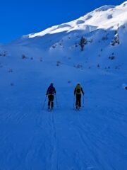 Partiti con aspettative al minimo, ne esce fuori una gita non male! L’itinerario è certamente uno dei pochi con neve abbondante, e in più oggi il vento non ha mai disturbato se non al colle.