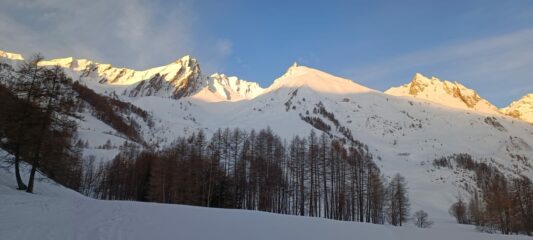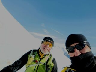 vento su tutta la gita , forte in cima, prima parte ventata ben sciabile parte centrale sastugi e crosta, tenendosi tutto a dx nel bosco(sotto ai Corlean) ancora bella farina