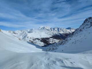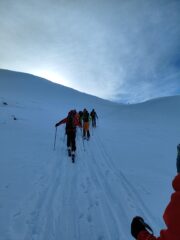 Prima metà di discesa bella farina, ad eccezione dei primi metri sotto il colle con troppo poca neve.