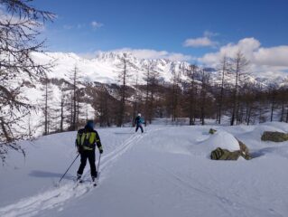Traccia salita ben presente inizialmente sui 5cm. di ❄️ fino 30 e passa la parte alta. Itinerario di discesa nel vallone trovato in buone condizioni con ❄️ + polverosa sulla parte dx mentre la sx più ventata con tratti di crosta. Parte finale qualche traccia vecchia si sentiva ,poi abbiamo seguito per intero e senza problemi la strada.