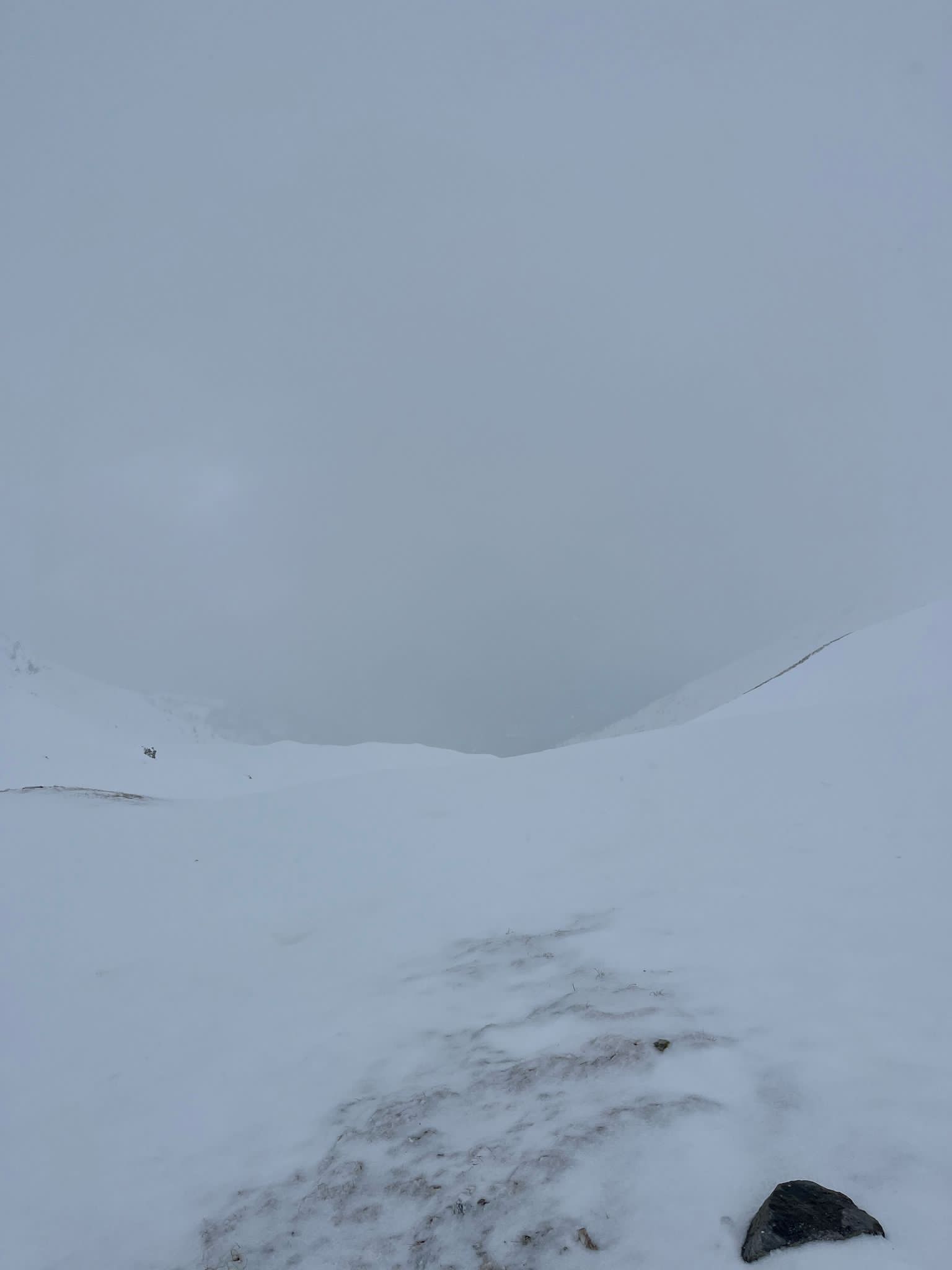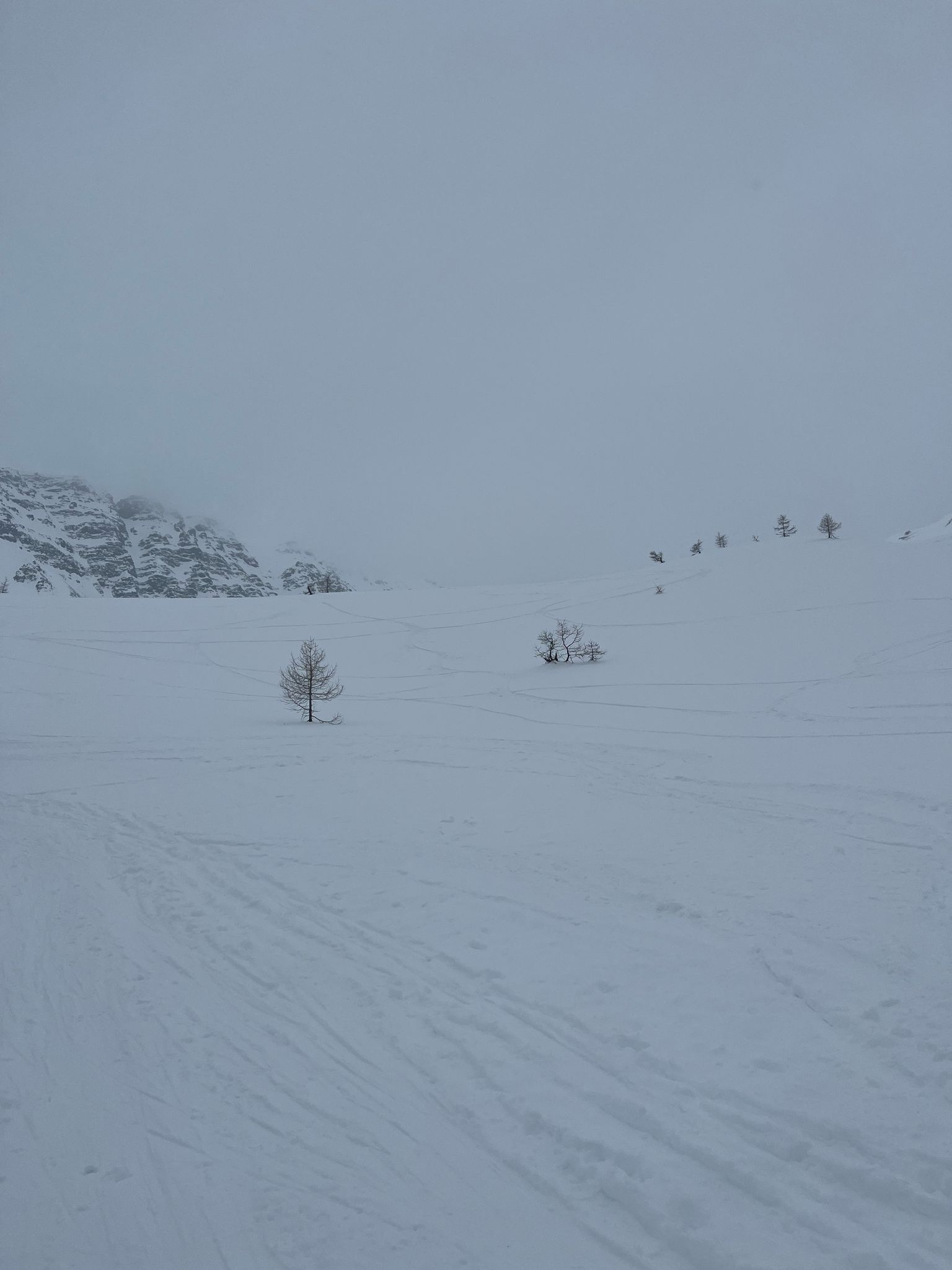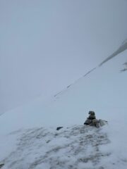 Nulla di rilevante da riportare. Visto persone salire alla sx orografica in un canale prima del colle. Visto che stava nevicando e iniziava a non vedersi molto siamo tornati dall’itinerario di salita.