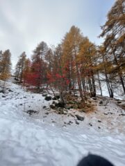 Partenza guanti in tasca, avvicinamento a piedi fino alle baite, poi salita nel bosco fino al piano a quota 2400. Neve come vinavil sia in salita che in discesa. Numerose valanghe da scarico su entrambi i lati della valle. Intravisti due cinghiali che grufolavano nel bosco.