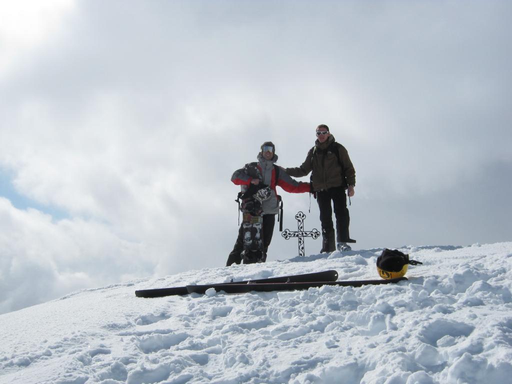 saliti sotto una debole nevicata (meno male che le previsioni davano poco nuvoloso!), arrivati in cima le nuvole sono sparite e così abbiamo potuto scendere con il sole. i primi 300 metri, grazie alle poche tracce presenti sono stati veramente belli; dai 2400 in giù ci siamo ricollegati con la discesa del col serena trovando neve già tritata da diversi passaggi. con marco alla sua 3° gita con la split