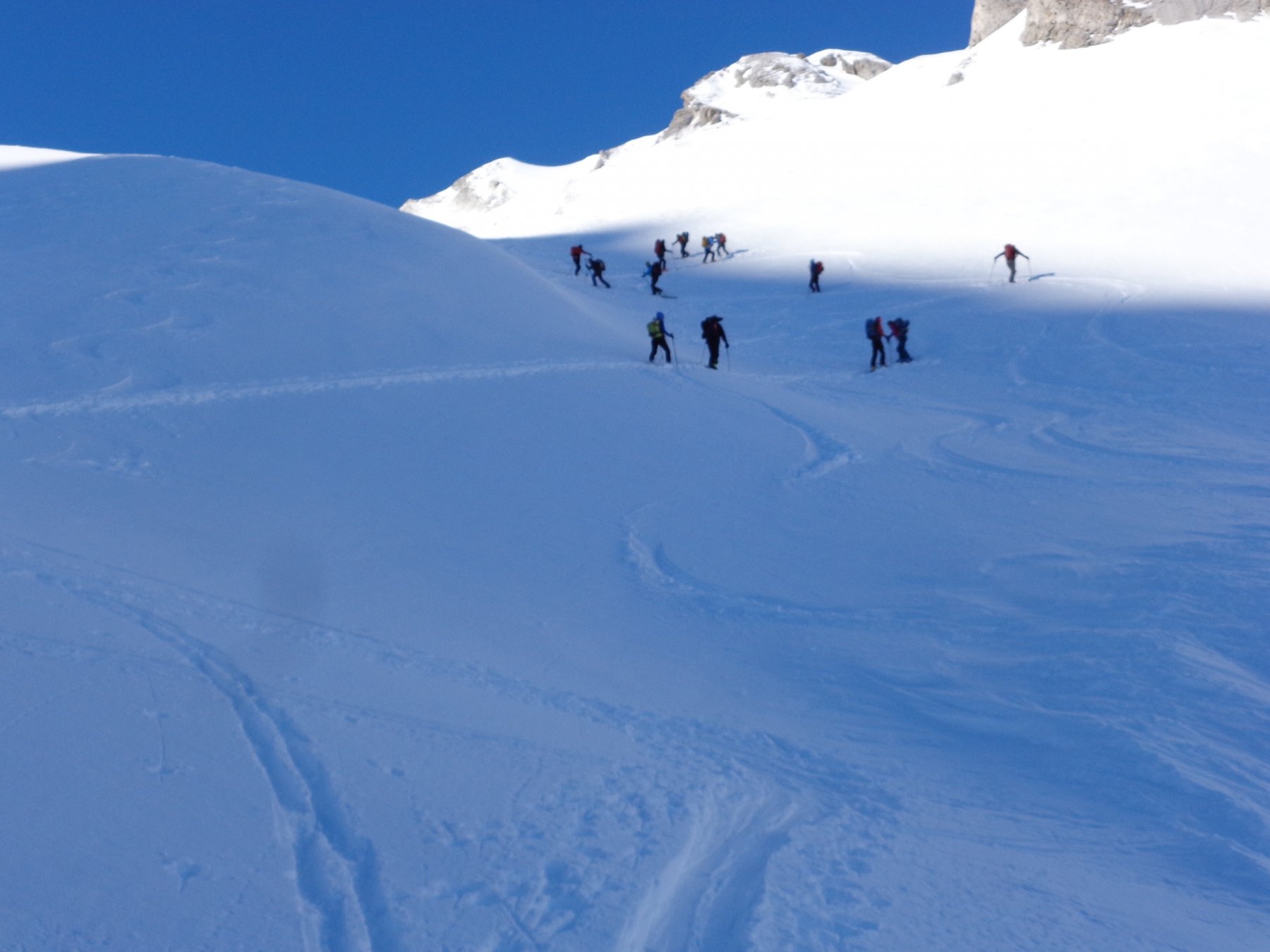 Grazie alla relazione di Chicca siamo saliti su questi bei pendii. Bella la gita, bella la neve e soprattutto bello il fatto di incontrare parecchia gente come me e i miei amici, amanti di montagna e di sciate . La zona del Col Serena oggi è stata presa d’assalto.