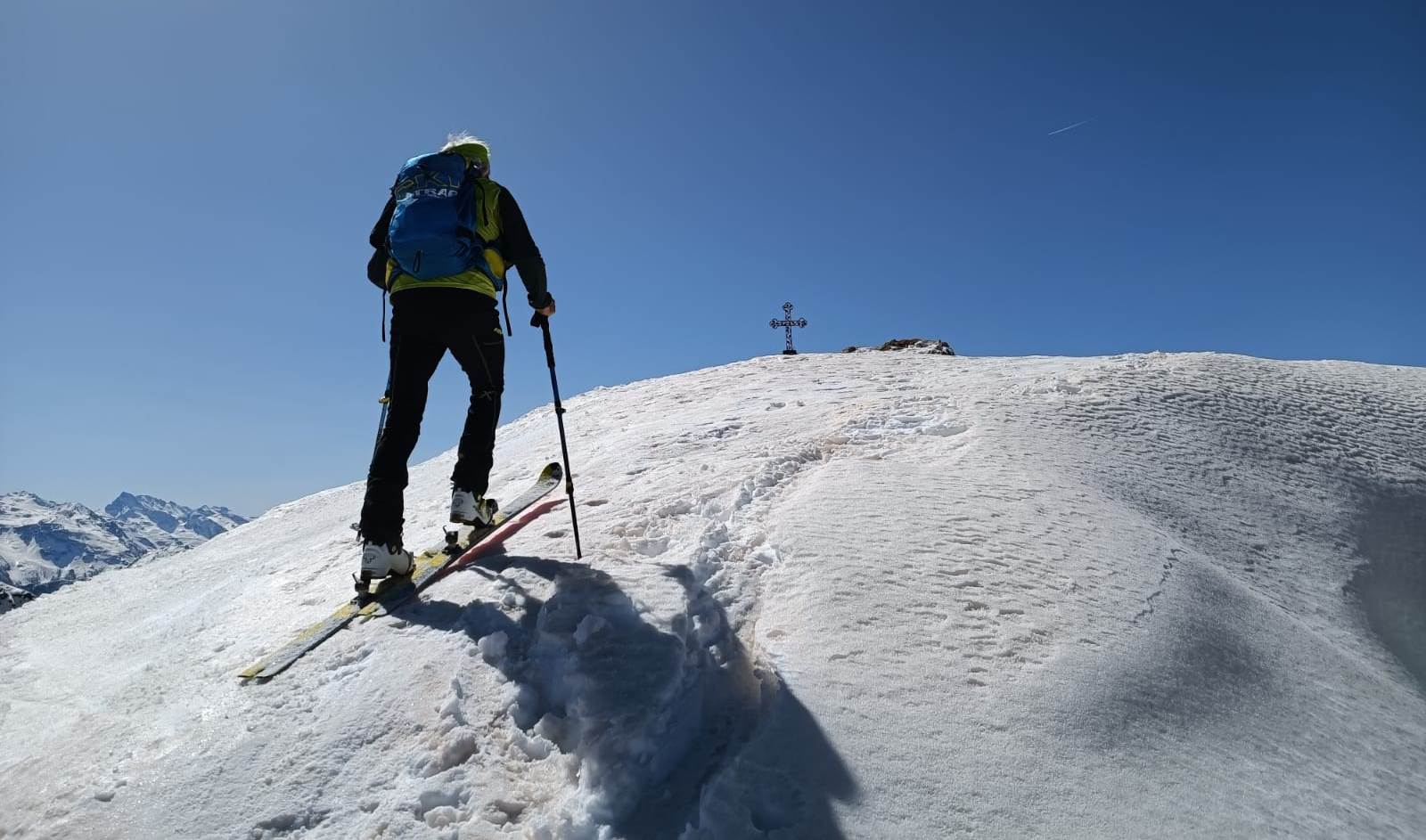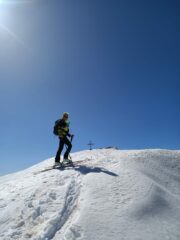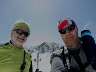 tornati su questo itinerario tutto il vallone ancora ben innevato, si parte sci ai pedi, anche oggi bella giornata primaverile, in compagnia di Jean Pierre.