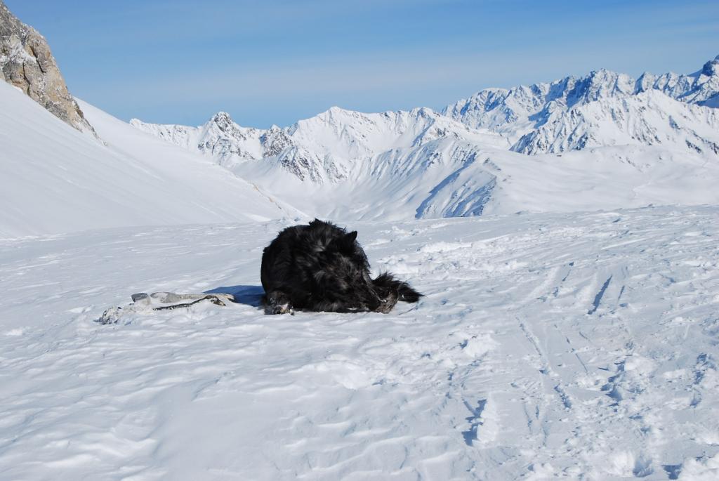 Un pensiero riconoscente a Frank, cane delle nevi, sempre presente sul percorso nonostante i ghiaccioli sul pelo che gli cambiavano il colore ……