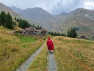Si sbuca nella radura con le varie baite di Arp du Bois inferiore 1946 m, da qui si abbandona la poderale dopo 100 m circa, riprendendo a salire sul sentiero di sinistra.