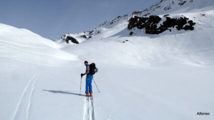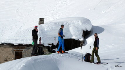 Neve brutta, non ancora trasformata e sfondosa in alto, trasformata solo sui pendii più ripidi esposti a sud, stradina ghiacciata; panorama sempre eccelso! arrivati in punta in compagnia di un’aquila solitaria e bellissima.