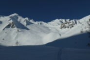 Risalire adesso la valletta sino al termine, un tratto ripido ci permette di portarsi in alto dove è possibile attraversare verso destra sopra a pendii decisamente ripidi ed entrare nella bella conca che senza problemi conduce al colle.