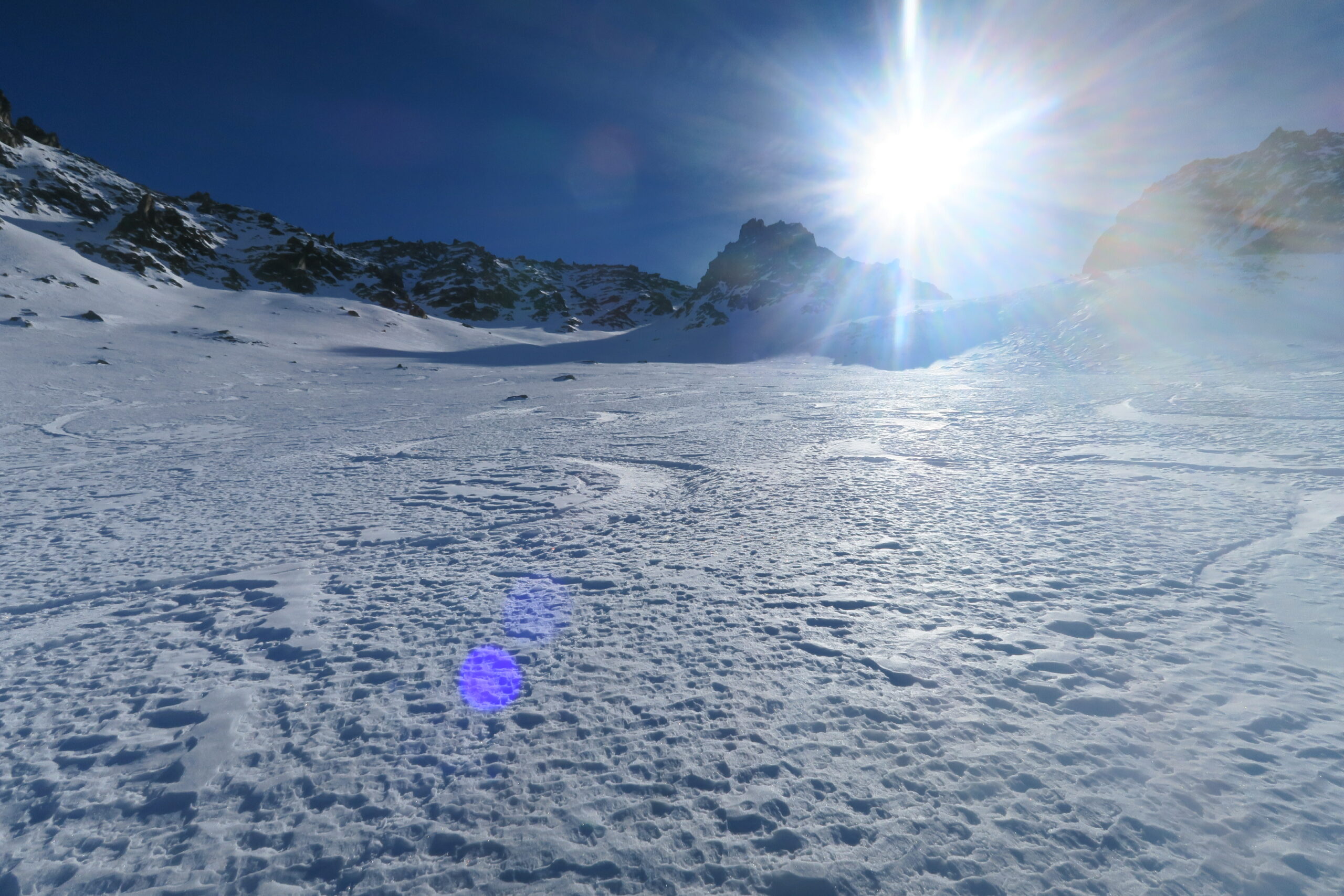 Primo tratto di discesa su neve duretta poi bella farinella fino al piano, infine il pistone fino in basso.