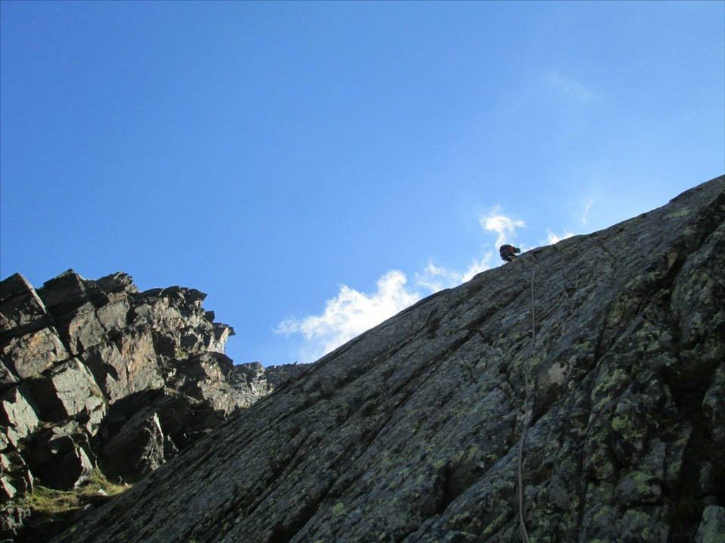 L2 si continua per placca abbastanza facile tiro lungo sosta su una fessura orizzontale 4b