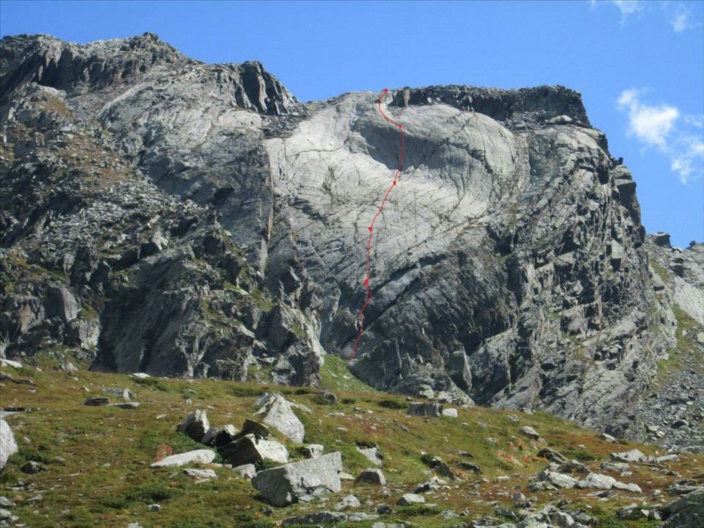 Si giunge al bellissimo Pian Saulera e si prosegue in direzione dell'alpeggio Saulera a quota 2095. Seguendo l'evidente sentiero per il Passo delle Mangioire, si giunge ad un piccolo pianoro a circa 2300 metri di quota dal quale, a sinistra si vedono le placconate lisce e l’evidente struttura.