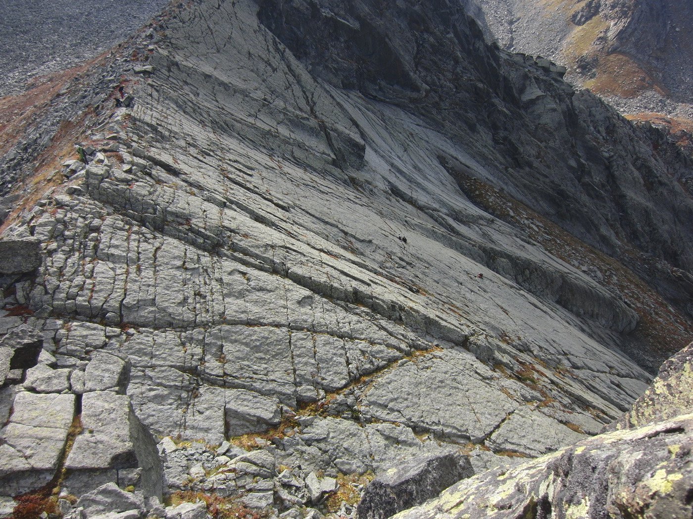 Discesa dalla via normale che ripercorre l’ultimo tratto di cresta, quindi prosegue verso SO fino ad un colle, dove si volge a sx e scendendo un canale di roccioso si torna nel vallone di salita. E’ anche possibile scendere per un canale erboso a sx (nord) delle blacche che permette di tornare alla loro base (un passo di disarrampicata sottocresta).