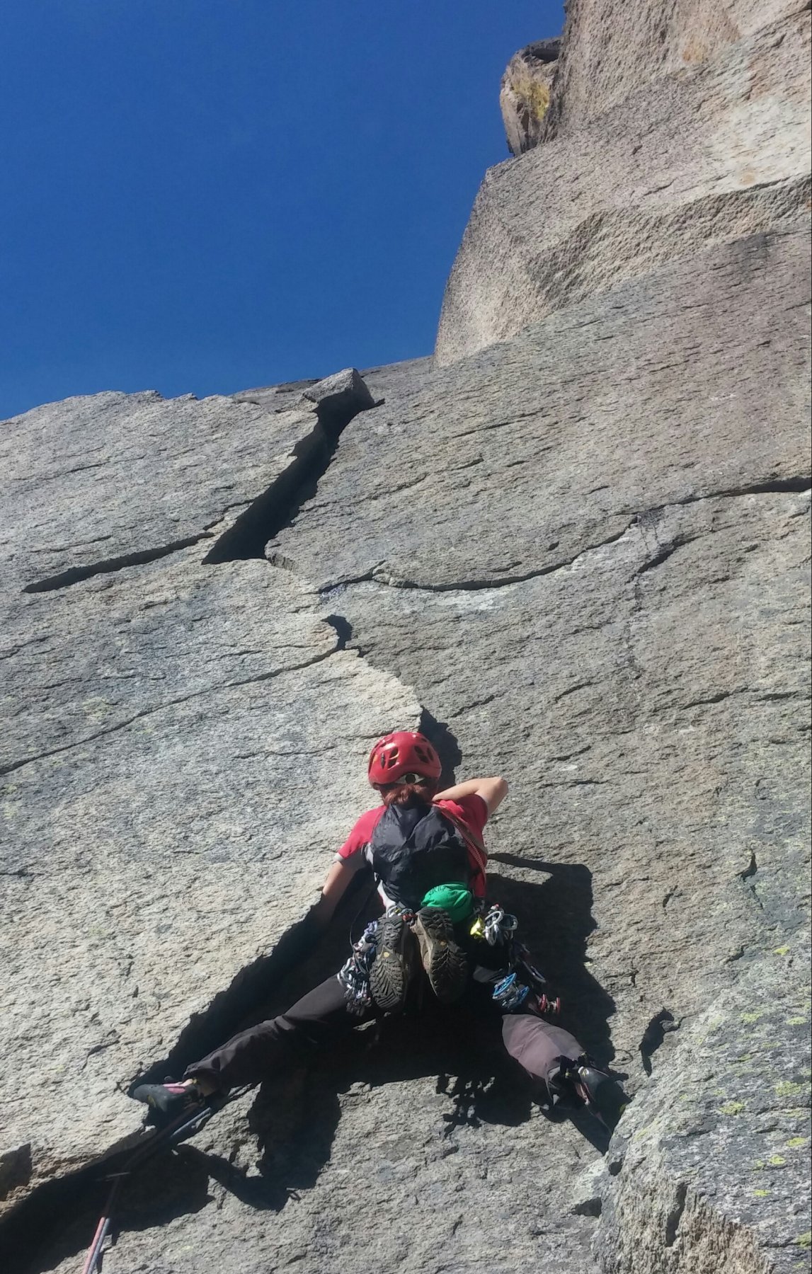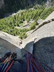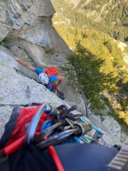 Bellissima via una delle più abbordabili della parete. Mai banale varia e divertente, stupendo il tiro del camino e il penultimo nel diedro.