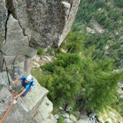 A tiri alterni con Riccardo alla sua prima via trad (percorso originale nel camino).