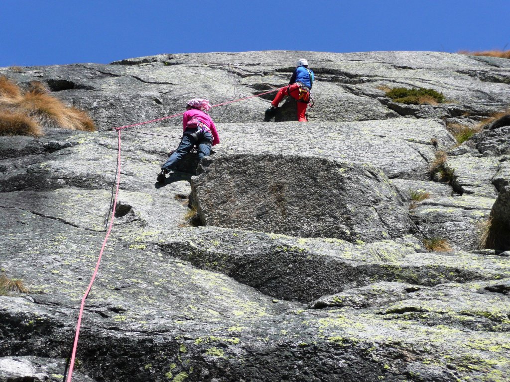 L1A: salire un facile muretto a destra, poi puntare a sinistra seguendo la rampa erbosa fino alla sosta in prossimità di un diedro (4a)