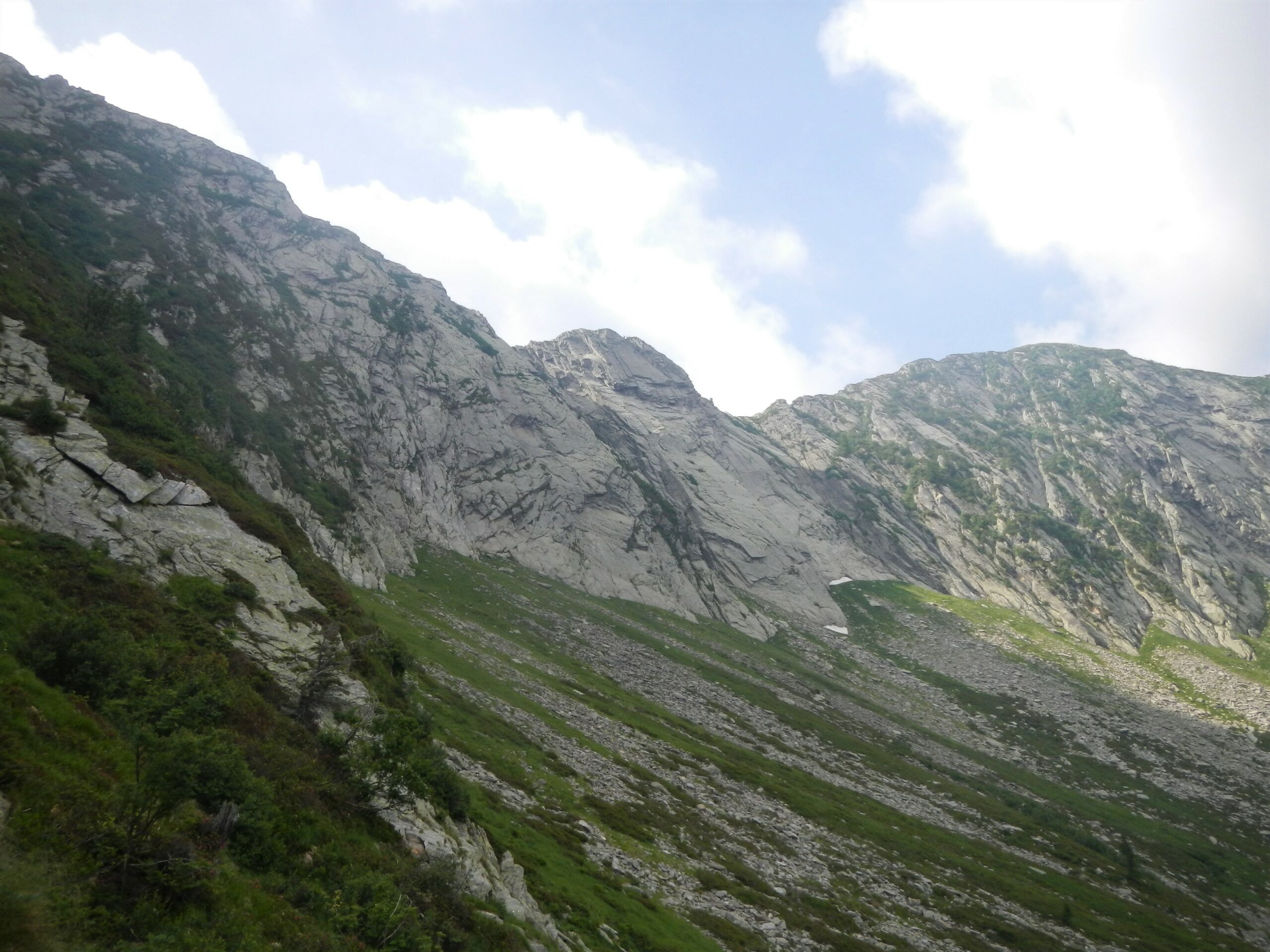 Via Paleari: dal bivacco puntare l'evidente pilastro appoggiato della punta Sergio 30 min, la via attacca piuttosto in centro al pilastro in un diedro-fessura (chiodi) a destra della via dei forestali e a sinistra di una vecchia linea di salita (spit vecchi).