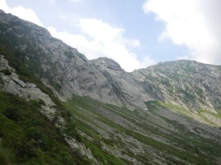giunti in cresta seguirla verso destra fino a reperire la calata della via forestali (ometto), sosta con anellone