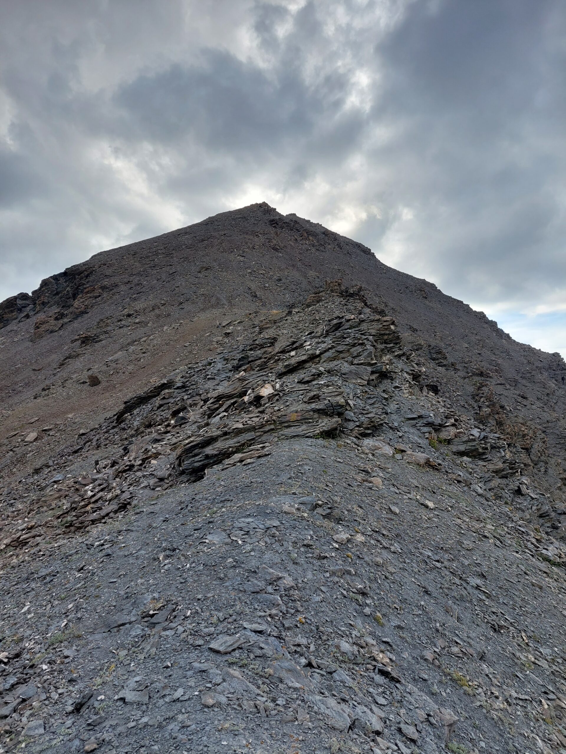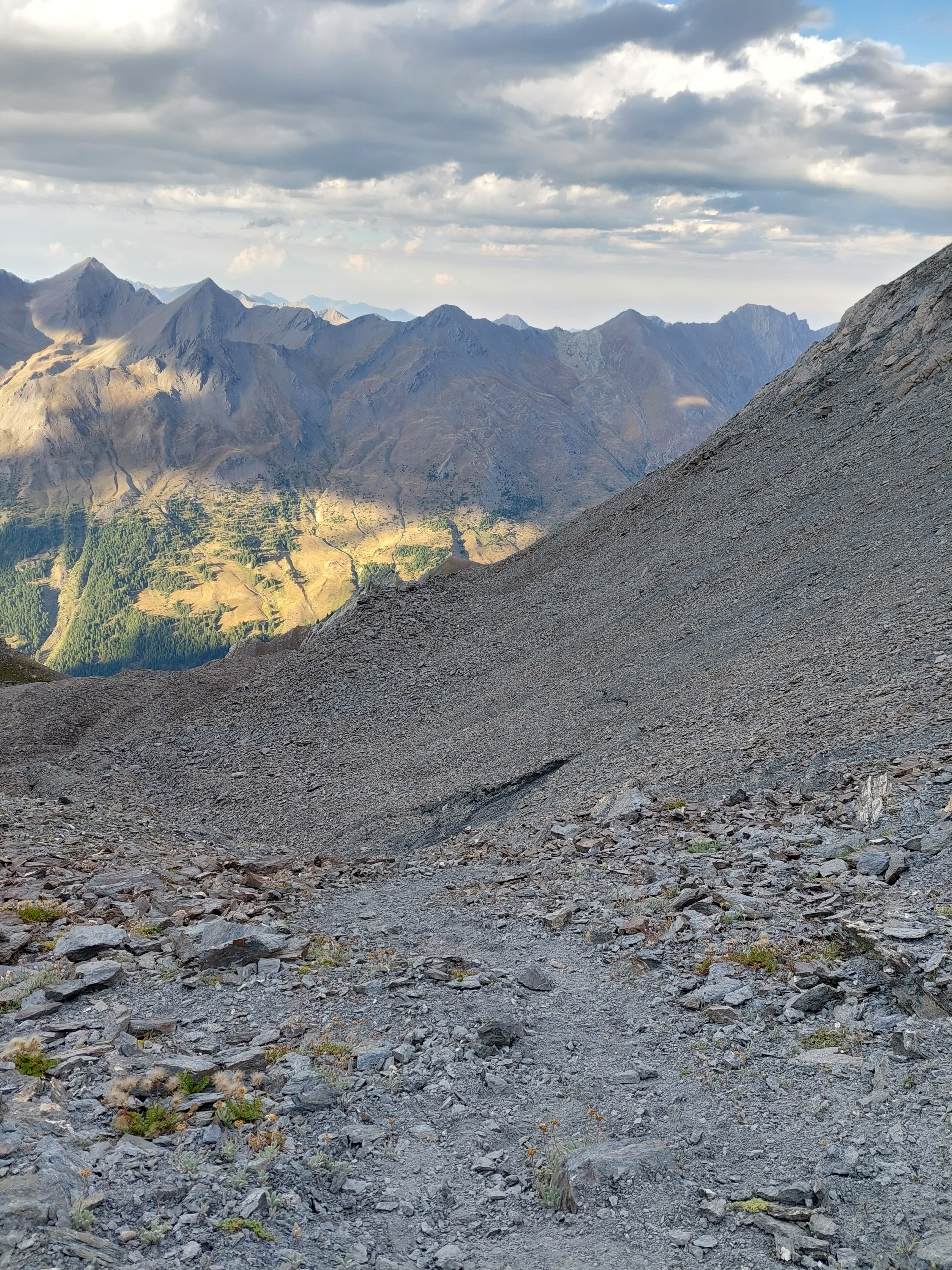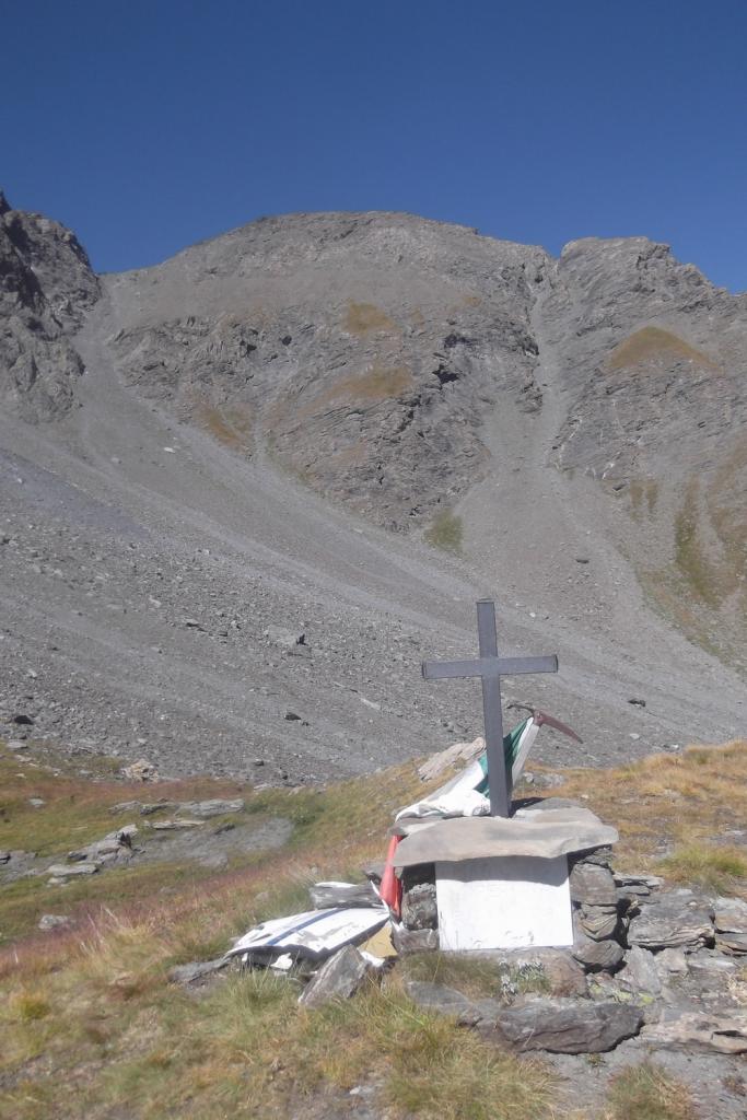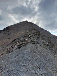 E’ ben visibile la traccia che con un traverso ascendente punta al Colle (nevai a inizio stagione), su terreno friabile e scivoloso, non c’è pericolo ma questo tratto è un po’ faticoso.