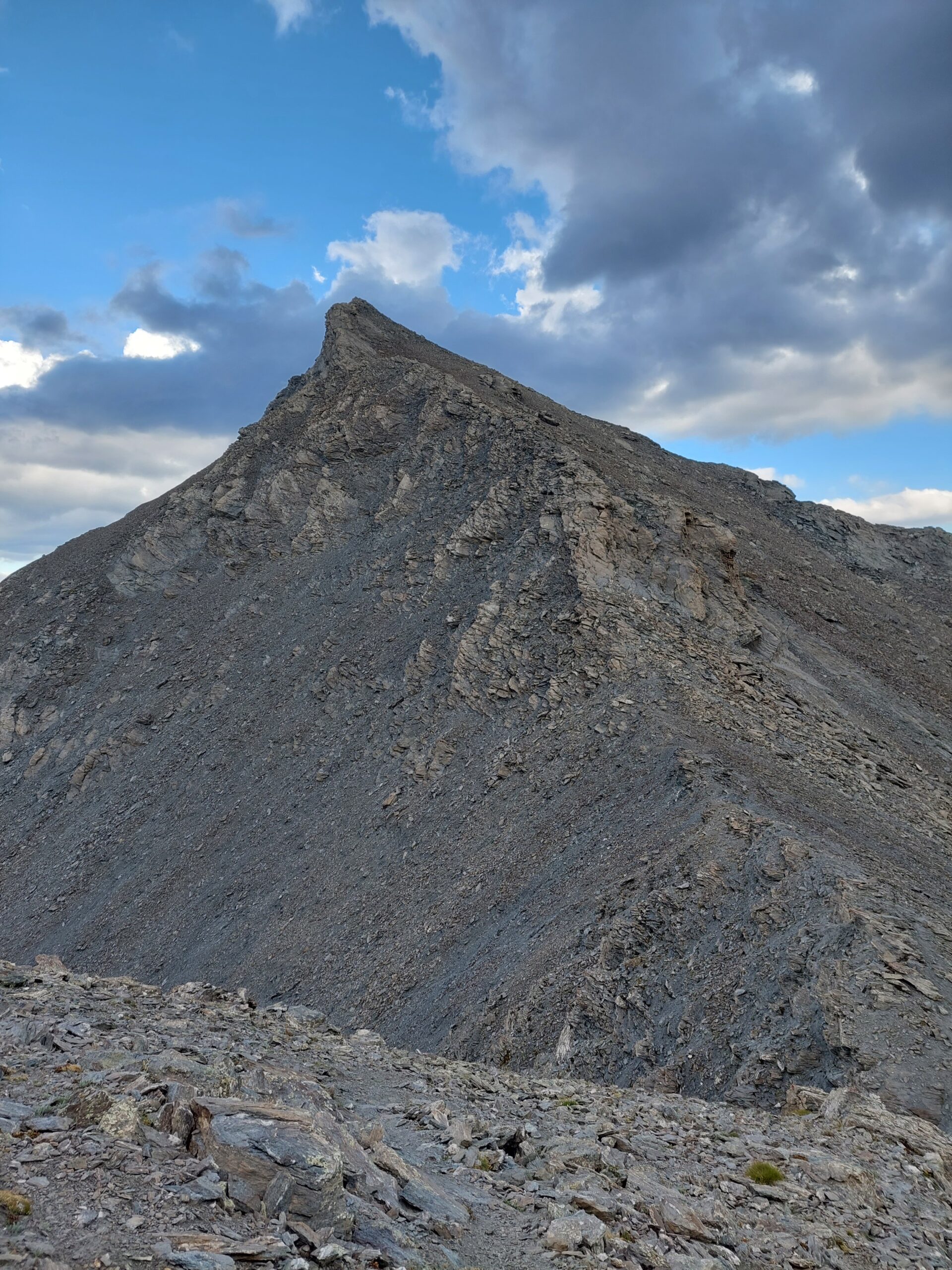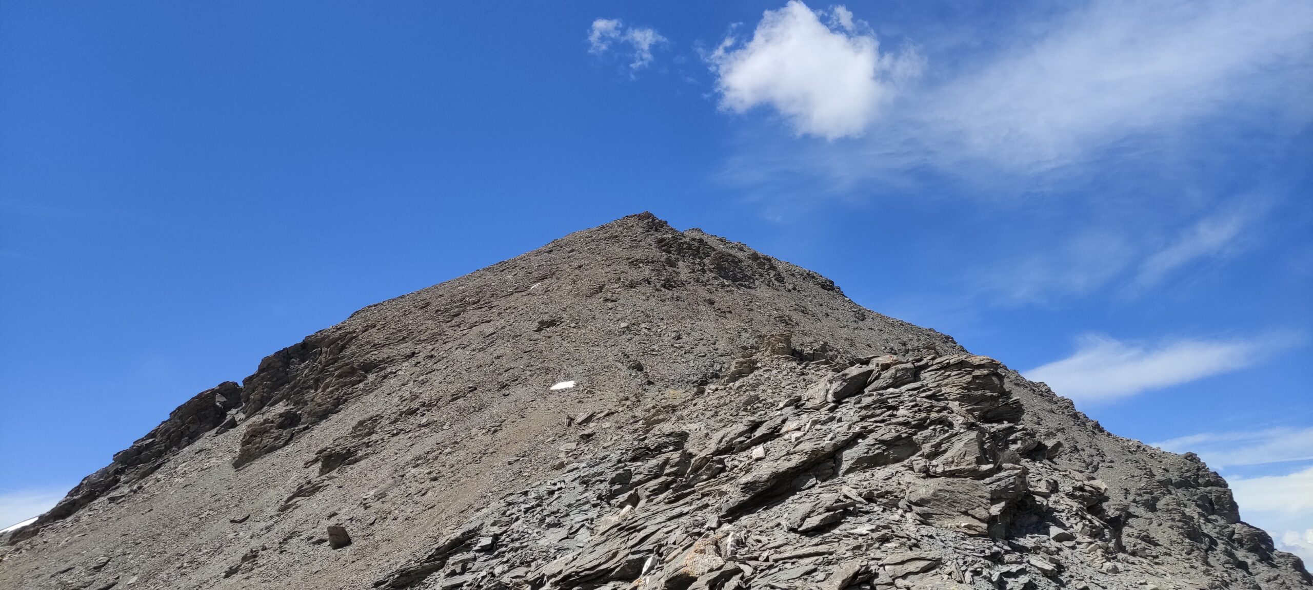 Si supera un colletto con una breve fascia di terriccio, prima di approdare ad una nuova conca pietrosa, dalla quale finalmente appare vicino il colle del Pelvo.