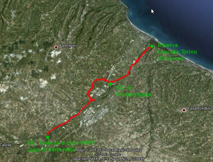 Il percorso attraversa punti di interesse come la Via Verde Adriatica, il mulino idraulico a Paglieta,il Castello e la Fonte di Septe a Mozzagrogna, aree pic-nic e le due Riserve.
