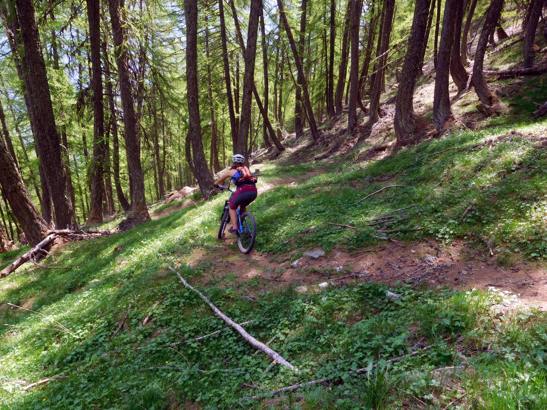 Si tralascia il ramo che scende a sx verso il col des Combes (che volendo porterebbe al punto di partenza con una discesa molto più diretta), per prendere a dx su tracciato lungo ma molto filante (qualche difficoltà tecnica in più verso la fine) fino a raggiungere una sterrata poco a monte dell’abitato di Seyes. Qui bisogna fare attenzione ad individuare la traccia che si infila tra le case (all’inizio non troppo visibile e poco segnata) e continua la discesa . Si incontrano due bivi principali dove bisogna sempre tenere a sinistra fino a raggiungere l’abitato di Le Serre.