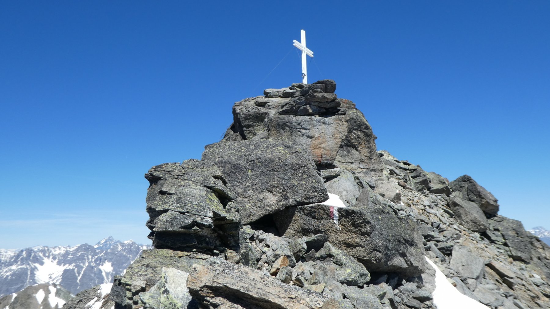 Dal rifugio, si segue il sentiero con segnavia n. 5 (indicazioni per la Fuorcla Sesvenna – Sesvennacharte) che sale un pendio erboso a sinistra, e con alcune diagonali raggiunge uno spallone erboso a quota 2500 m, dove si apre il Vallone Kloanbergl che si deve risalire. Piegando a sinistra si risale il vallone per pendii erbosi prima e detritici, si tralascia un sentiero a sinistra che porta al Lago Sesvenna (Sesvennasee), e si prosegue a destra, entrando in una conca a quota 2660 dominata a sinistra dalla Punta della Vedretta (Fernerkopf) m. 2953 e dallo Schadler m. 2948 a destra, non lasciarsi tentare da una traccia di sentiero che sale a sinistra, ma rimanere a destra, risalendo il pendio che gradualmente diventa più ripido fino a sbucare sull’ampia insellatura della Fuorcla Sesvenna m. 2819 posta sul confine tra Italia e Svizzera. Dal colle il Piz Sesvenna ed il rimanente percorso da fare sono ben visibili ed evidenti. Si piega a sinistra e si scende decisamente una ripida china detritica per circa 100 metri di dislivello (o nevosa ad inizio stagione) che porta in una conca pianeggiante dove ha inizio il ghiacciaio (Vedretta di Sesvenna o Sesvennaferner su cartografia locale). Messo piede su ghiacciaio, si risale la prima ripida rampa con andamento da sinistra verso destra (questo tratto può essere crepacciato, attenzione!) sbucando nell’ampia conca glaciale compresa tra il Muntpitschen a sinistra e il Piz Sesvenna a destra. Con percorso diretto si punta inizialmente verso la Foratridaspitze e poi verso il colletto di quota 3081 posto tra la Foratrida a sinistra e il Piz Sesvenna a destra, una ultima ripida rampa nevosa porta al colletto. Dal colletto si mette piede sulla cresta Est, che si inizia con un traverso da destra a sinistra per evitare un primo gradino verticale (I) si può anche salire direttamente il gradone (II). Sopra il gradone una cengia aggira a sinistra un torrioncino, poi si entra in una specie di spaccatura-camino che porta sul filo di cresta vero e proprio. Tenendosi generalmente sul filo, con alcuni aggiramenti a destra per evitare altre piccole torri, qualche tratto innevato (che richiede attenzione) con diversi passaggi di facile arrampicata su gradini e blocchi (roccia abbastanza solida, generalmente I con qualche metro di II) superando qualche tratto affilato ed abbastanza esposto si raggiunge la base della parte alta della cresta, dove una traccia di sentiero consente di aggirare i passaggi più impegnativi ed arrivare sotto il blocco roccioso sommitale, che viene aggirato a destra con una sorta di semicerchio, e poi su roccette facili si raggiunge la cima, sormontata da una grande croce metallica con quaderno di vetta. Lungo tutta la cresta si trovano segnavia biancorossi e ometti, che facilitano la scelta dei passaggi migliori ed evita perdite di tempo nella ricerca dell’itinerario. Dal rifugio alla cima vanno considerate ore 3.30/4.00 a seconda delle condizioni della montagna. In discesa si percorre a ritroso lo stesso itinerario di salita, oppure (ma solo con neve in ottime condizioni) è possibile scendere direttamente per i ripidi pendii del versante Nord-Ovest (tratti a 40°) fino a raggiungere nuovamente la traccia di salita sul ghiacciaio, che va seguita integralmente, risalendo alla Fuorcla Sesvenna e poi fino a Slingia.