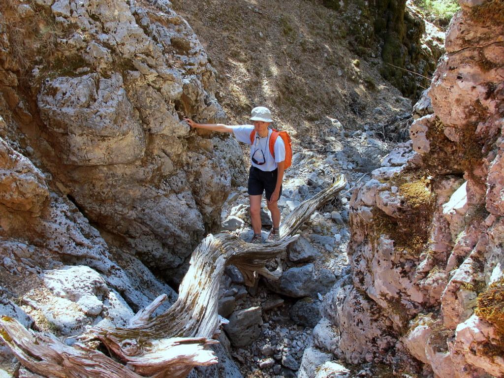 Giornata soleggiata e senza vento, temperatura ideale. Ravanato un po’ prima di trovare il ramo principale della gola alla congiunzione con i rami laterali, l’uscita verso il ramo di dx è molto più evidente e naturale, oltre che da ometti è indicata anche da recenti bolli rossi che inducono in errore. Molto bella la mulattiera che scende ad Ammoudhari, peccato che sia stata deturpata in alcuni punti per creare un percorso MTB. All’arrivo al villaggio pensavamo di avere un’ora e mezza di margine prima dell’arrivo del bus, invece avevamo pochi minuti, gli orari eran cambiati qualche giorno prima!