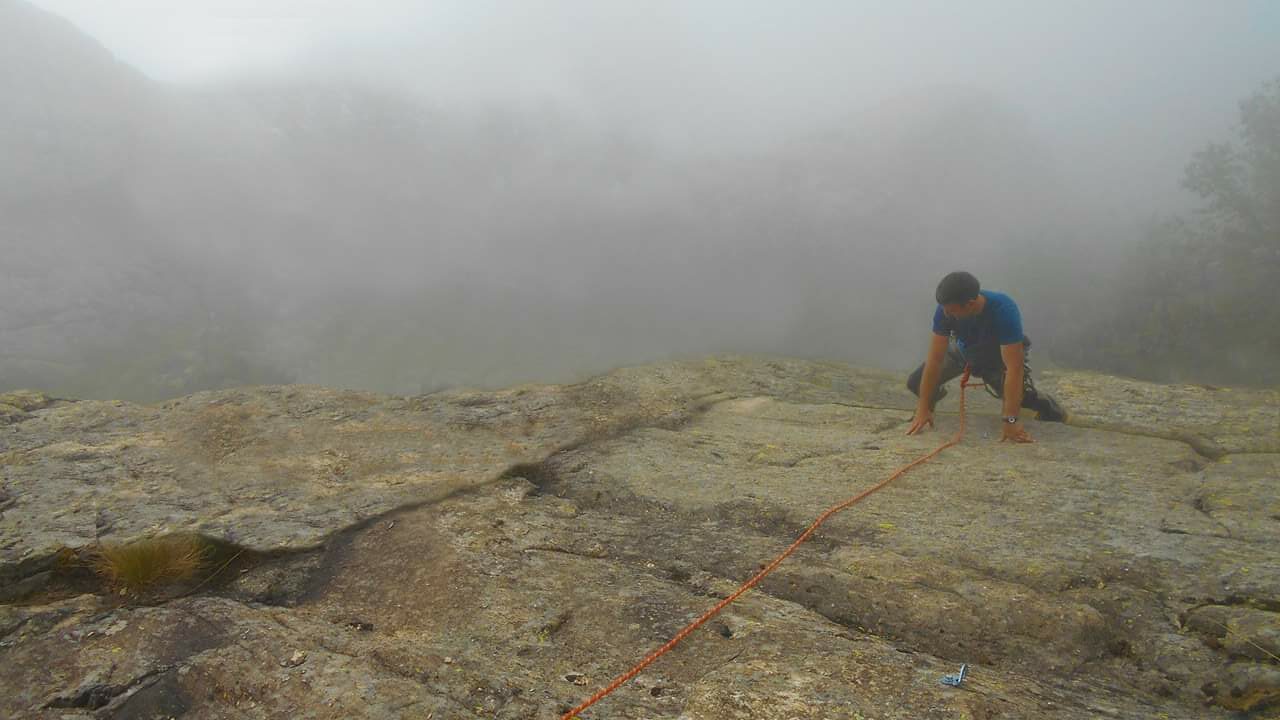 da S1 molto comoda (posta su un balconcino fra le rocce), con un breve trasferimento su erba leggermente verso dx, portarsi alla base della grande placca centrale e salirla fino alla sosta di progressione (3°+ costante per tutta la salita), superando alcune cenge (su una delle quali sulla sx verrà attrezzata un sosta fuori via, adibita al solo cospo di agevolare le discese in doppia su corda singola da 70 mt.).