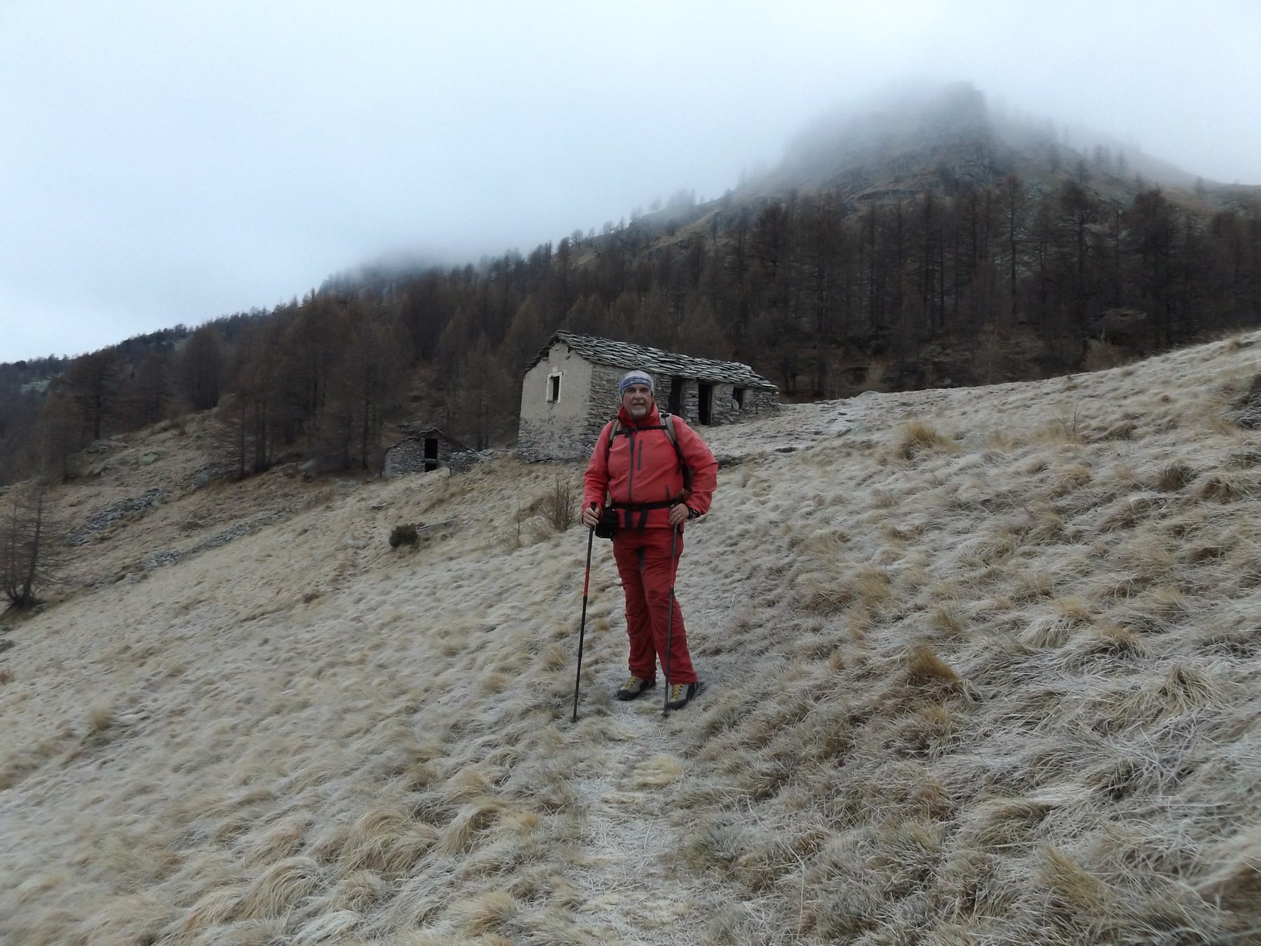 Oggi gitarola mattutina aspettando Natale – Giornata fredda e nuvolosa con nebbia sui 2000 mt. – Partenza da Moies risalendo il bel sentiero in pineta sino a Cà Bianca, appena fuori dalla pineta sembrava avesse nevicato tanto nella notte con la nebbia aveva brinato, rendendo il sentiero una saponetta, risaliti poi lungo il sentiero che con ampie svolte porta al colle Sià, breve disgressione verso l’ometto che indica le tracce di sentiero verso la Ciarma, che era il nostro obbiettivo, ma la nebbia fitta che precludeva completamente la visuale, ci ha fatto ritornare sui nostri passi raggiungendo il colle Sià e successivamente stando sul lato vallone del Roc la cima della Merola (peccato per i panorami oggi azzerati) – Incontrati diversi locali (camosci) che con una giornata come oggi immagino cosa avranno pensato – Alle 11.00 birretta al bar della pista di fondo – Buon Natale