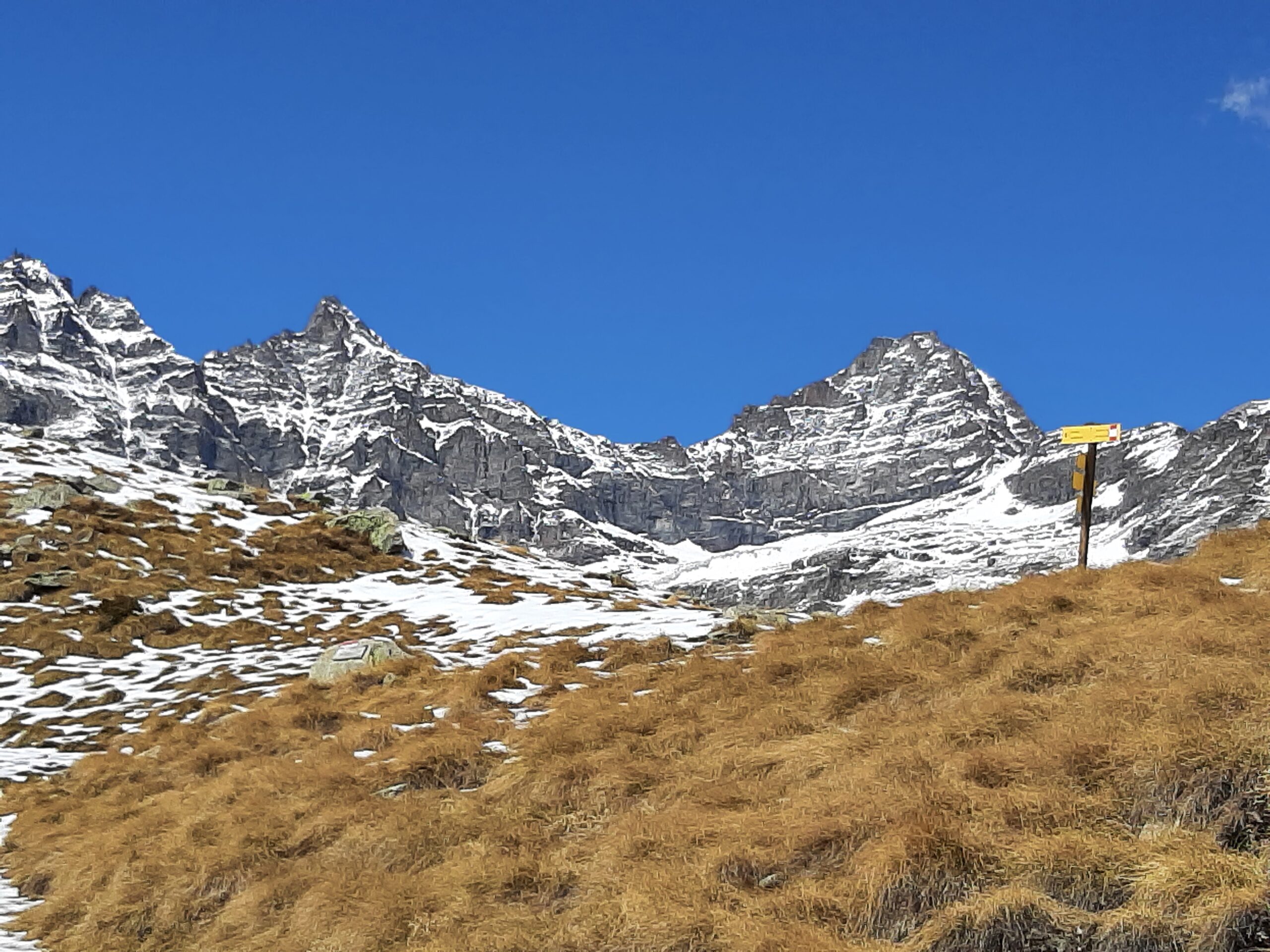 Pomeridiano a rivedere le montagne.Neve solo nel traverso sotto al colle e prima della fontana, evitabile.Giornata fresca ma gran blu.Neve in cresta alla Merola.Avevamo i ramponcini ma non li abbiamo usati.