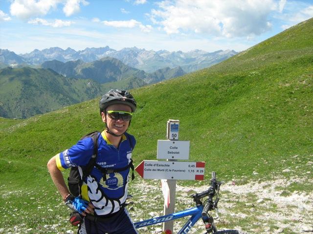 Gita col CAI di Venaria; partenza alle 9.45 da Lottulo, dopo il noioso trasferimento in asfalto fino a Ponte Marmora abbiamo attaccato la salita all’Esischie, molto lunga ma con pendenze mai impossibili, a parte 2-3 brevi rampette nella parte centrale (ma si tratta di poche centinaia di metri). La parte bassa è molto ombreggiata, poi quando si esce dal bosco i panorami diventano grandiosi e ripagano della fatica. Dopo una bella pausa al Colle di Esischie, abbiamo proseguito su sentiero fino al Colle Intersile, con diversi saliscendi e alcuni tratti di portage (in totale direi non più di 10-15 minuti complessivamente). Da qui comincia la lunghissima discesa, alternata tuttavia da alcune brevi risalite,alcune delle quali da fare con bici al fianco. Nella parte alta il fondo è un po’ smosso e bisogna fare un po’ di attenzione e in qualche tratto bisogna scendere di sella, poi bellissima l’ultima parte fino alle Grange Tibert. Quindi, dopo la risalita alla Bassa di Narbona inizia la parte più impegnativa della discesa, su sentiero stretto e abbastanza accidentato, con numerosi tornantini stretti e delicati, che portano fino alla baita da cui parte il veloce tratto sulla pista agro-pastorale. Assolutamente splendida anche la parte bassa della discesa, quasi interamente su sentieri e mulattiere, passando dalle frazioni di Castellar, Chiesa e Ansoleglio. Anche qui la ciclabilità è pressoché totale, ad eccezione dell’ultima parte nel bosco prima di arrivare a Lottulo dove numerosi alberi caduti ostruiscono il passaggio…