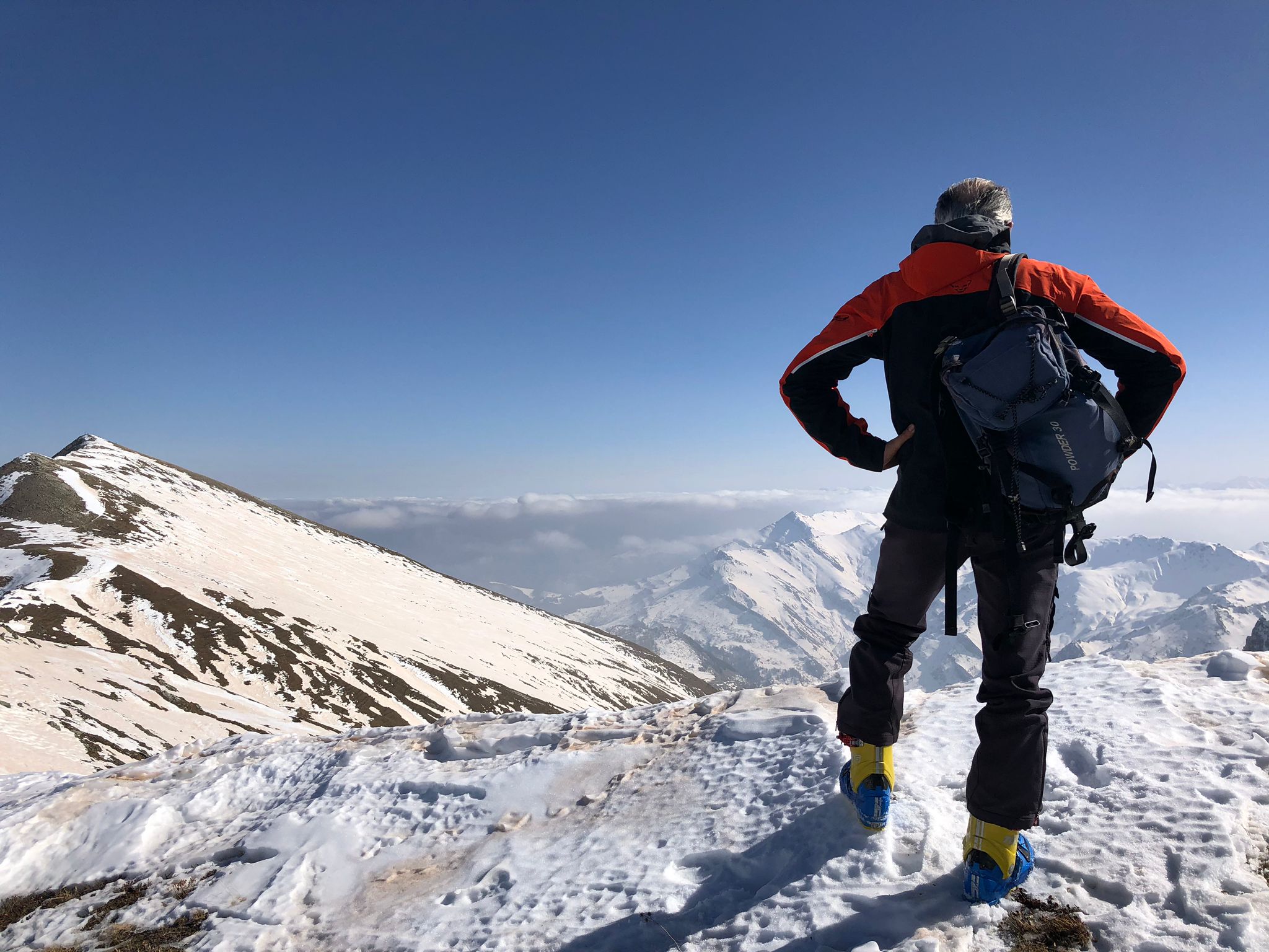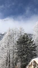 Bei panorami verso le ore dieci quando la nebbia si è diradata dando spazio a pini carichi di nevischio e il monte la Bianca che faceva cupolino fra cielo terso e la nebbia. Oggi con la figlia Giulia. BUONE GITE A TUTTI.
