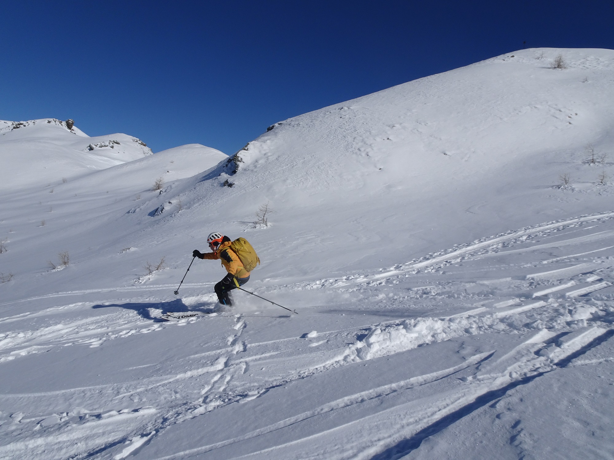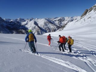 Non c’è molto da aggiungere alla relazione di Carlodg , polvere da cima a fondo , polvere anche sulla strada. Meteo super e cielo blu cobalto. E che bella compagnia. Gita azzeccata grazie ai consigli dell’amico Ivan da Tolosano che ringrazio. In compagnia di Carlodg, Gil, Paolo, Nino, Nicola, Roberto e Massimiliano.
