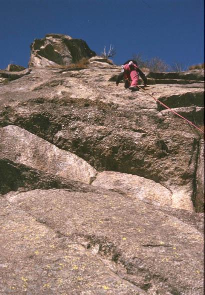 I gradi sono notoriamente stretti, per divertirsi occorre scalare almeno sul 6c a vista, la roccia è ottimo granito con placche, muri verticali, strapiombi.