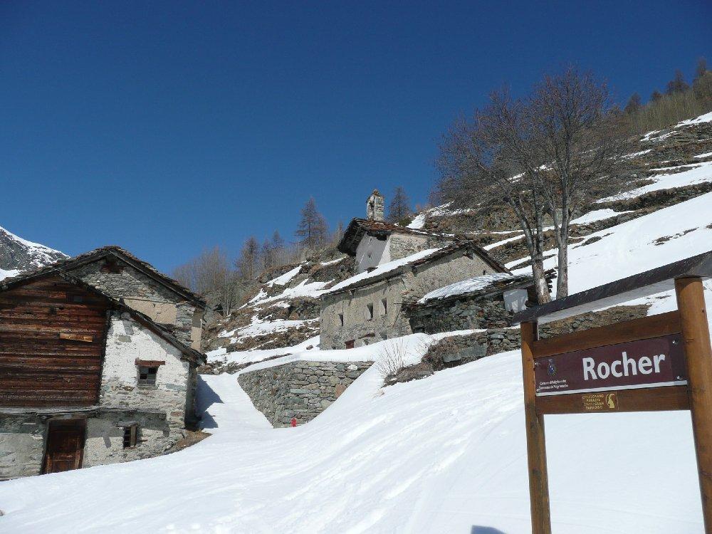 2. Attraversare la Dora di Valgrisenche sul ponte passerella della pista di fondo e raggiungere il sentiero estivo (Alta Via 2) che dalla frazione Mondanges sale al Rifugio dell’Epèe, seguirlo fino a quota 2043, deviare a sinistra (sentiero nero su l’Escursionista 1/25.000), passato poi un colletto a quota 2212 in breve si incontra l’itinerario del p. 1 a quota 2300/2400 (vedi mappa e traccia GPS del 3/1/13).