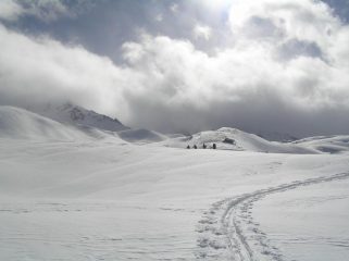 40cm di neve nuova e farinosa: anche in basso niente male essendo scesi a mezzogiorno. La giornata è stata clemente ed è uscito persino il sole. Peccato un po’ di affollamento e soprattutto l’elicottero (e la motoslitta) dell’elisky.