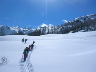atmosfera natalizia con alberi innevati, tempo bello e discesa molto divertente, neve ottima appena più pesante sul finire dell’escursione. Peccato che il sogno è durato poco, il sole ha cancellato le tracce di questo “breve” inverno; ad ogni modo il tratto dal posteggio della diga sino alla galleria è ancora innevato.