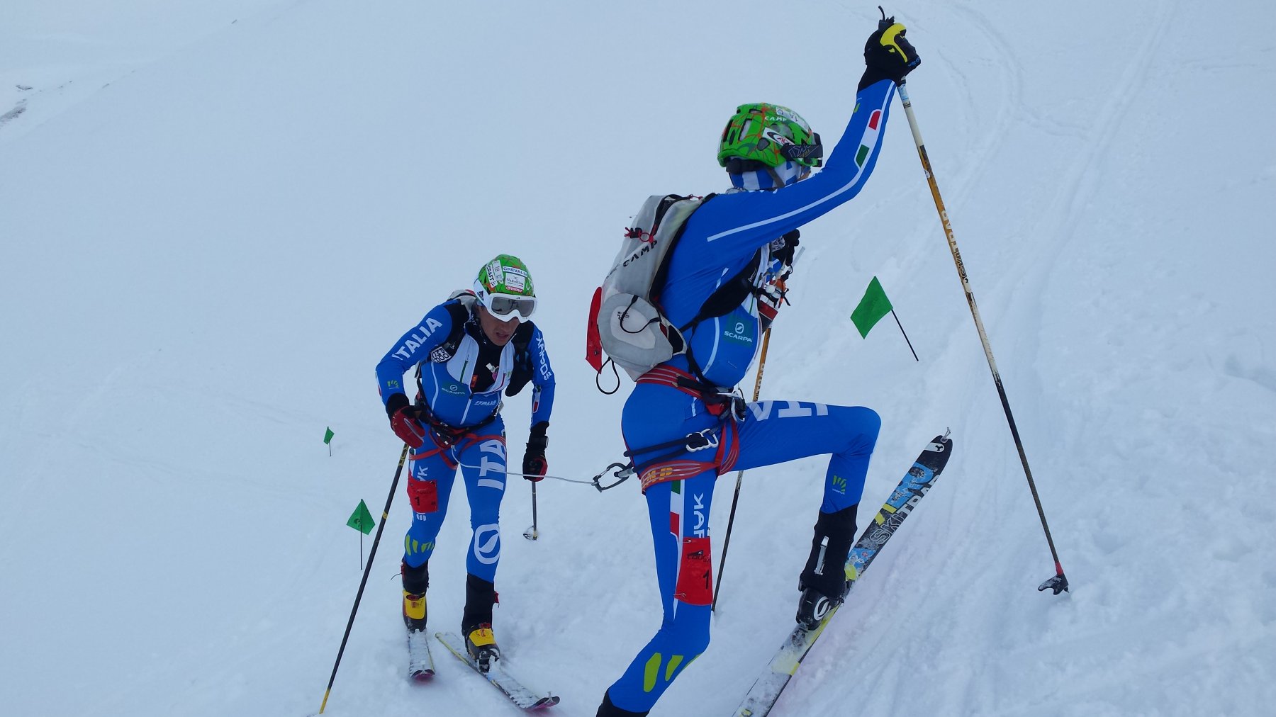 Prima tappa della gara “Tour du Rutor”. Il giro di boa è leggermente più a sx del Sigaro. In alto crosta portante, in basso: marcione…che sarebbe stato anche divertente da sciare, ma ho dovuto prestare un mio sci ad un concorrente che ha fatto esplodere il suo Dynastar. Adesso ho una gamba tre volte più muscolosa dell’altra ; P