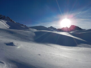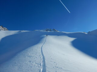 Splendide condizioni in zona, percorso già tracciato fino a metà, poi il socio ha tracciato fino in vetta. Ottima neve polverosa, ancora fredda scegliendo le esposizioni giuste. Buon innevamento in zona.