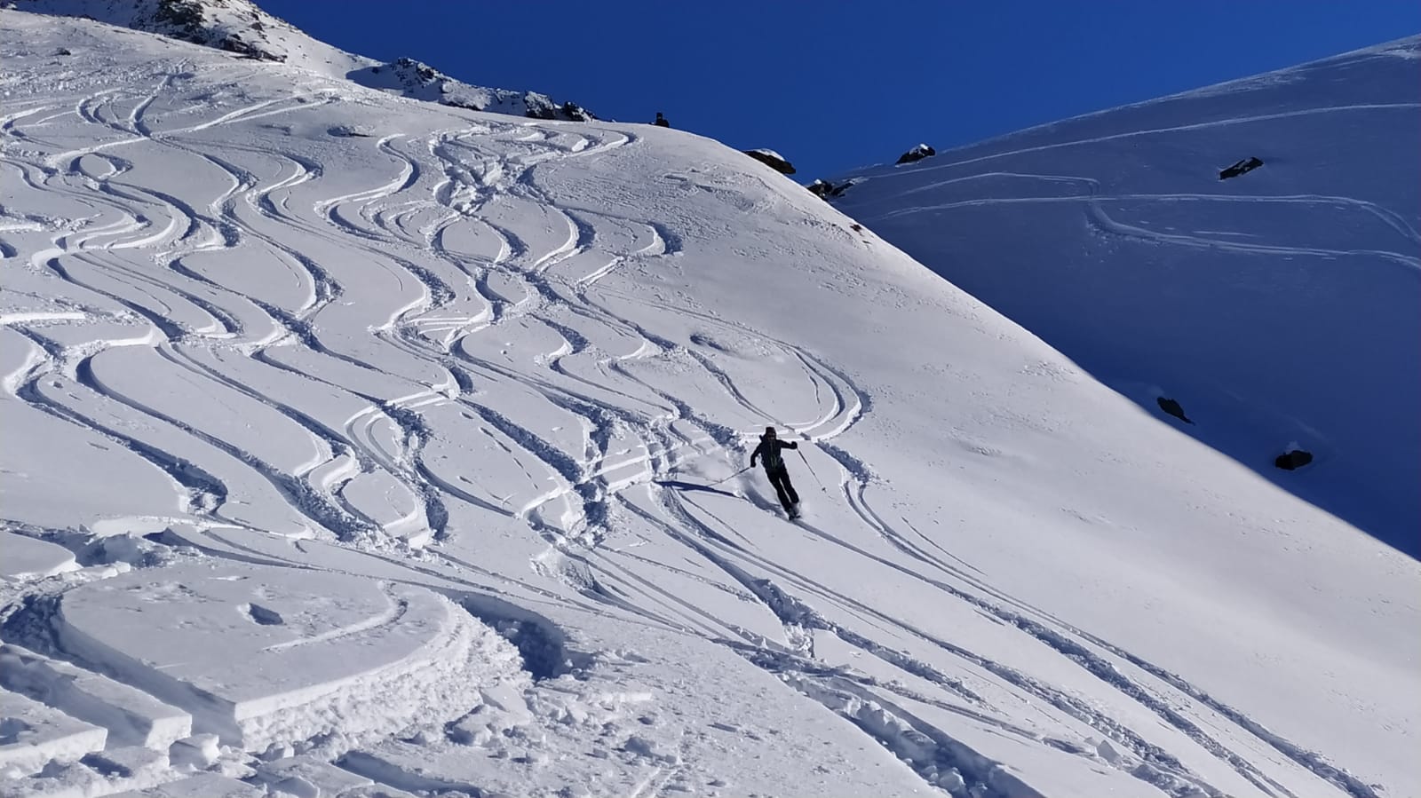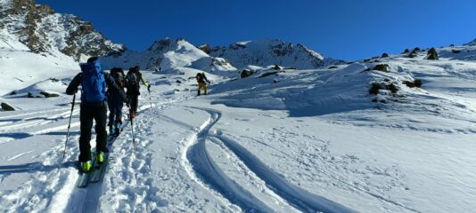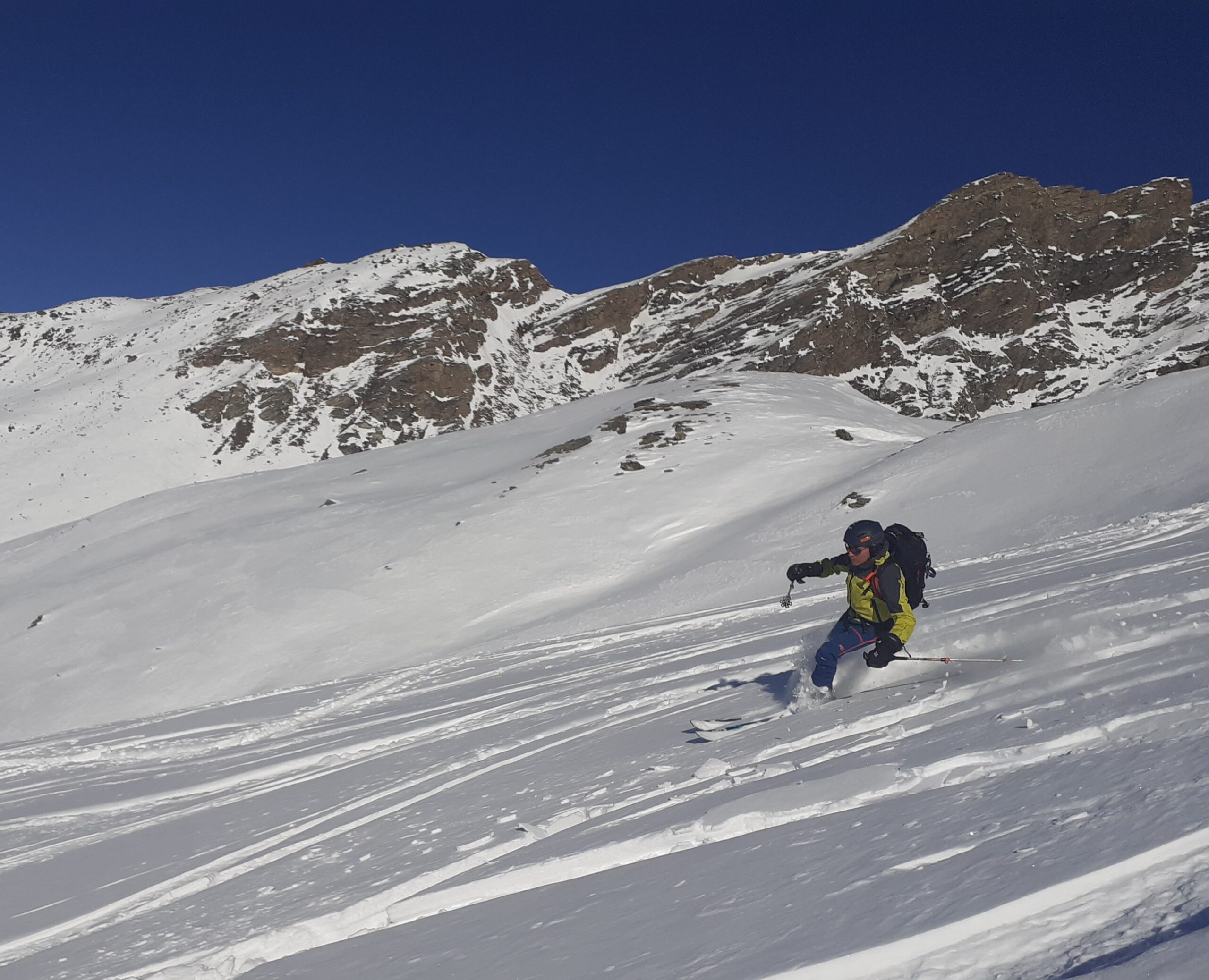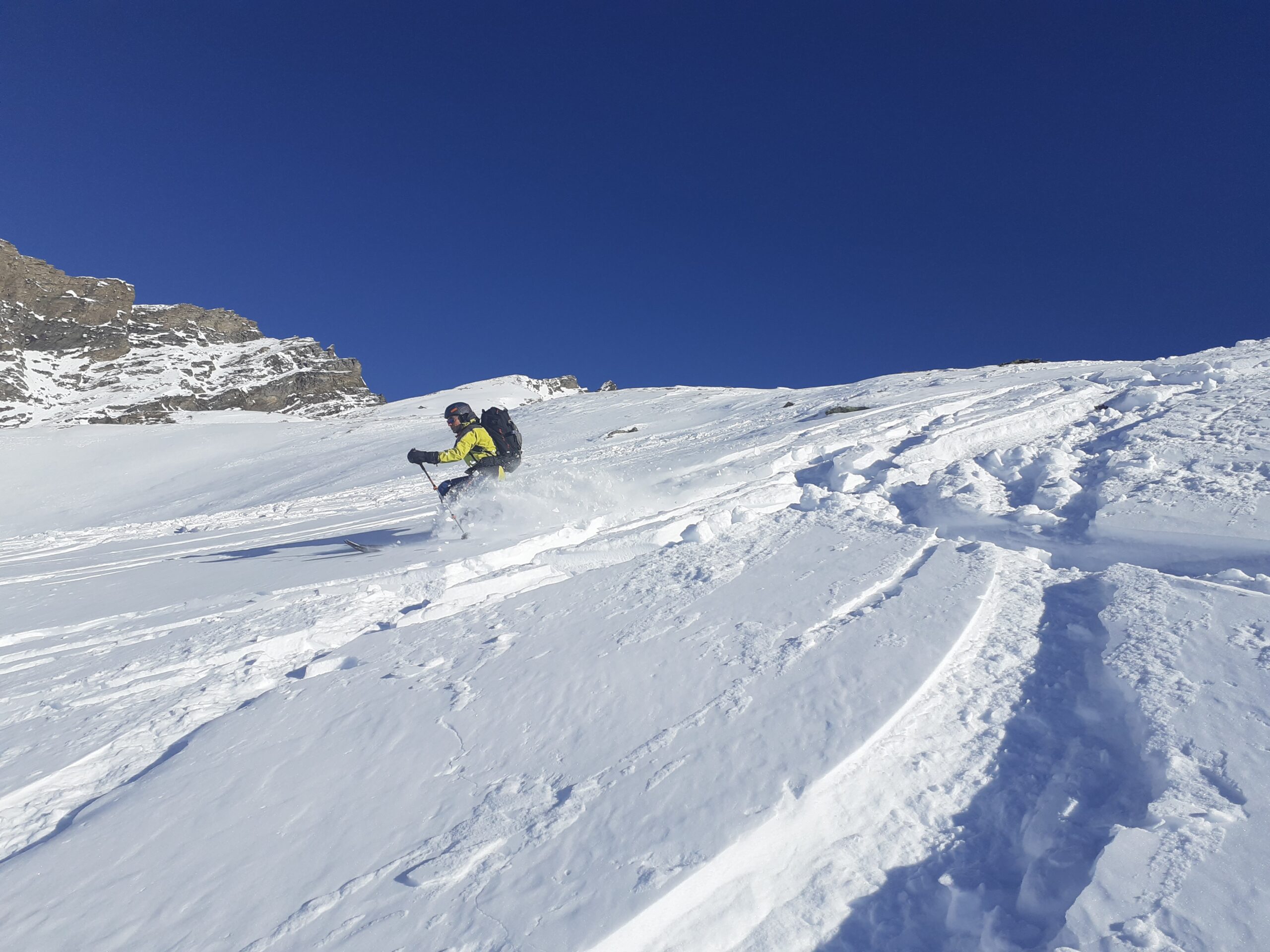Partiti dal parcheggio dell’hotel Foyer de Montagne con 3 gradi di temperatura e una leggera brezza. Innevamento continuo. Percorso già tracciato e ambiente meraviglioso. Salendo il vento è cessato e in vetta ci siamo goduti il panorama senza patire il freddo per la prima volta in questo inizio di stagione. Discesa molto bella con neve polverosa da cima a fondo, solo in alcuni tratti un pochino ventata. Il lungo rientro lungo il lago della diga di Beauregard si fa tutto con gli sci ai piedi ma ogni tanto bisogna spingere un po’. Una giornata super con Tiziano, Luca, Lelloz e Sergio.
