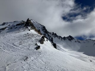 Sci dal parcheggio dell’Hotel. Copertura su tutta la gita. Per la neve…accontentiamoci.