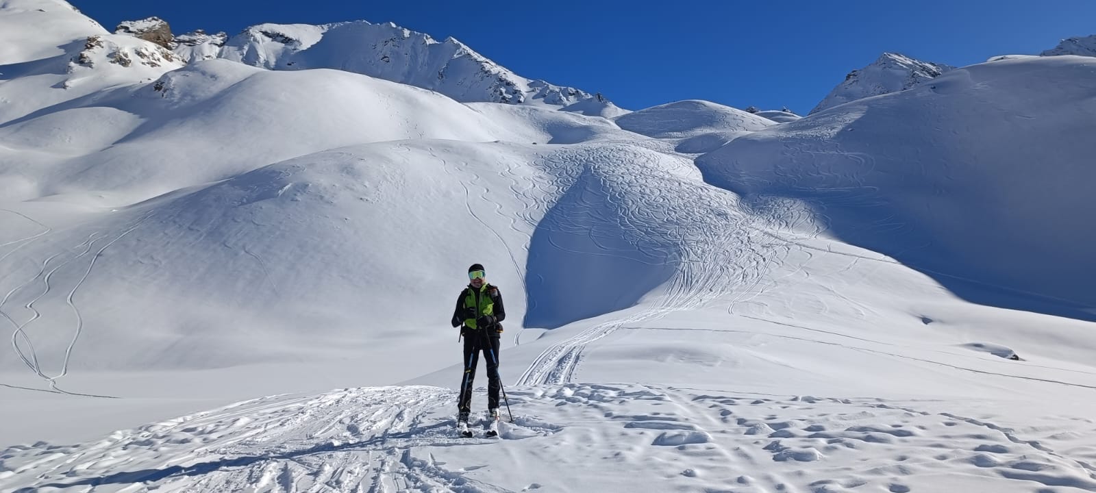 fatto un giro largo arrivati dal versante W, bellissima neve su tutto il tracciato,con J.Pierre, un saluto alle ragazze e ragazzo di Prè St.Didier