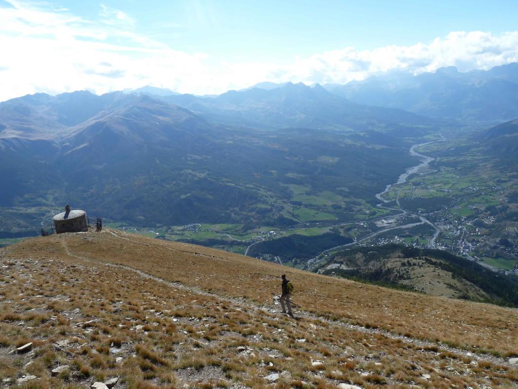 Da qui in avanti il percorso si fa assolato, e inizia a risalire il versante sud della Pointe de Cote Belle. La lunga mulattiera, in pendenza costante ed in buono stato, porta a toccare una prima costruzione circolare (Poste d’Observation) e poi dopo una lunga serie di serpentine che risale il pendio, una seconda costruzione militare, gemella della precedente (Poste Optique posta alla base del crinale sommitale della Cote Belle, che in pochi minuti si raggiunge a 2575 m.