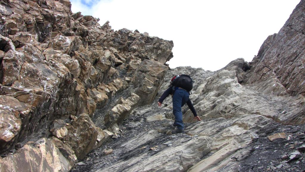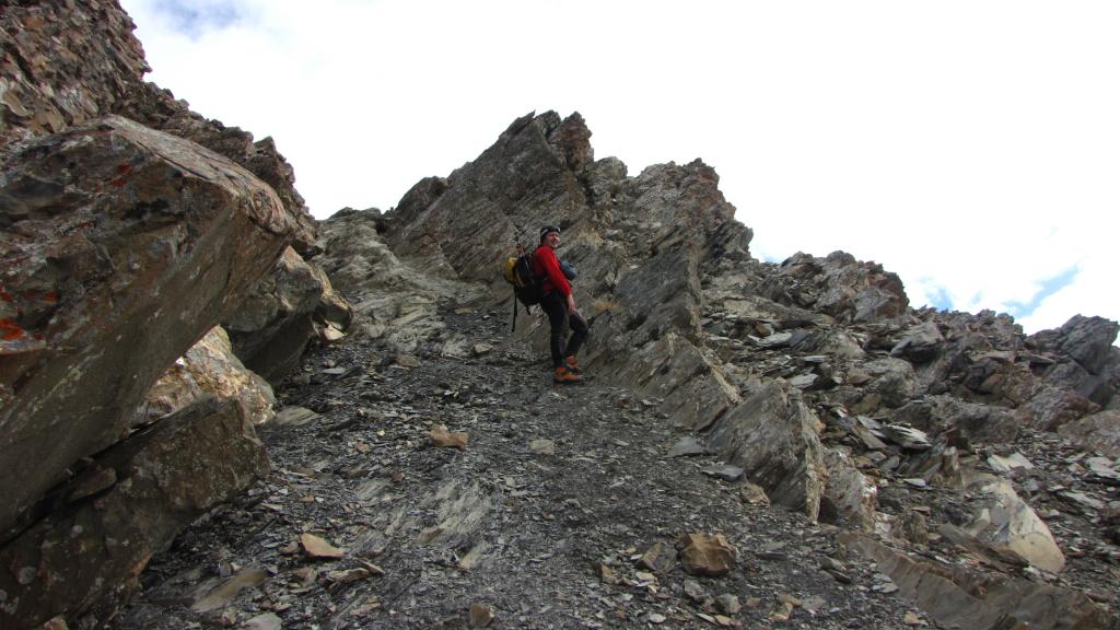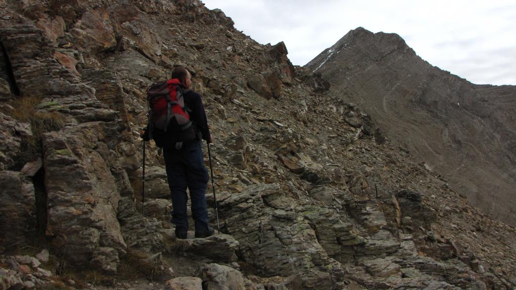 Ridiscesi al bivio precedente, con un po’ di attenzione si attraversa il pendio (inizialmente la via migliore non è così evidente) puntando a raggiungere una specie di cengione detritico dove si notano degli ometti strategici; da qui in breve si arriva alla Baisse de la Charbonniere 2846 m.