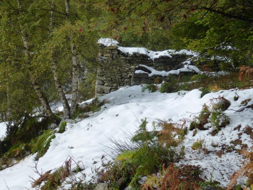 Oggi da solo scelgo visto il meteo e la neve a bassa quota di immergermi nei boschi di Pertia fino alla Punta ‘dla Simma,circa 25cm di fresca dal Passo Betassa alla Punta ma percorso non faticoso,solo qualche colpo di fucile sparato dalla Betassa ha rotto per qualche attimo il silenzioso bisbiglio del bosco.Raggiunta la Simma l’intenzione era quella di scendere a Tirolo ma essendo solo ho preferito non rischiare il ripido pendio innevato tra i faggi che scende alla Casaforte e tornare sui miei passi.