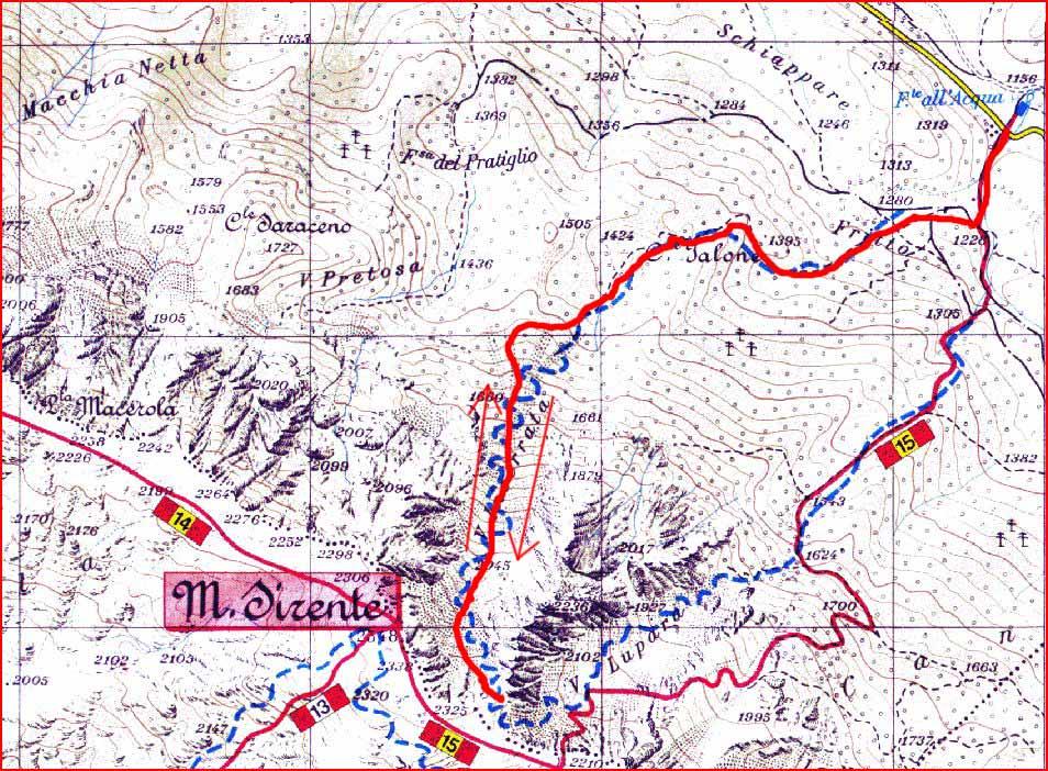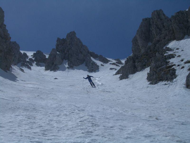 Possibilità di discesa più diretta in Valle Inserrata per un ripido canale situato più in prossimità della vetta (c.d. Tubino)