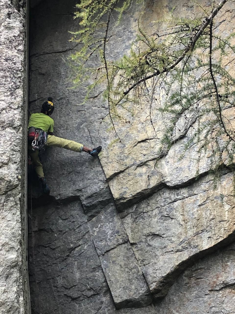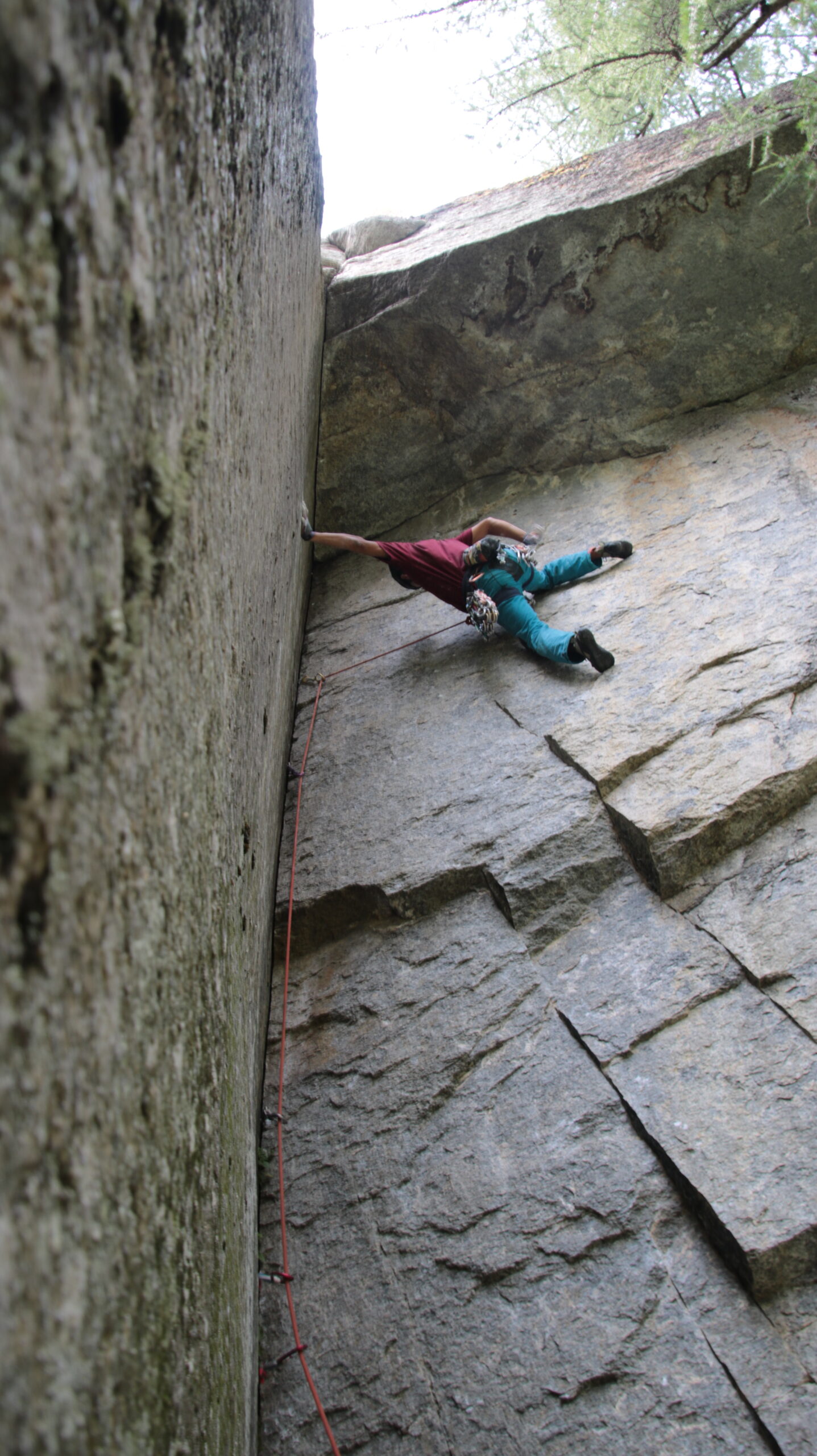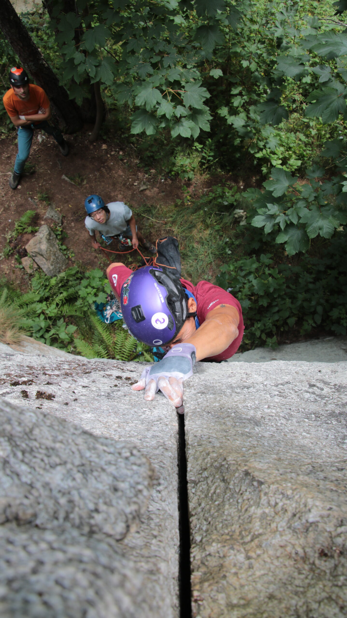 Una delle migliori fessure della valle. Incastri di dita e mano.