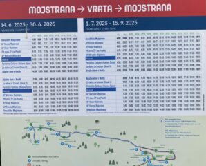 - Se si vuole evitare di dormire in val Vrata, consiglio camping Kamne o l'area camper a Mojstrana https://maps.app.goo.gl/LVS5rnyLB7aHrCcP8 entrambi a 5 min dalle fermate della navetta gratuita. Allego img orari.