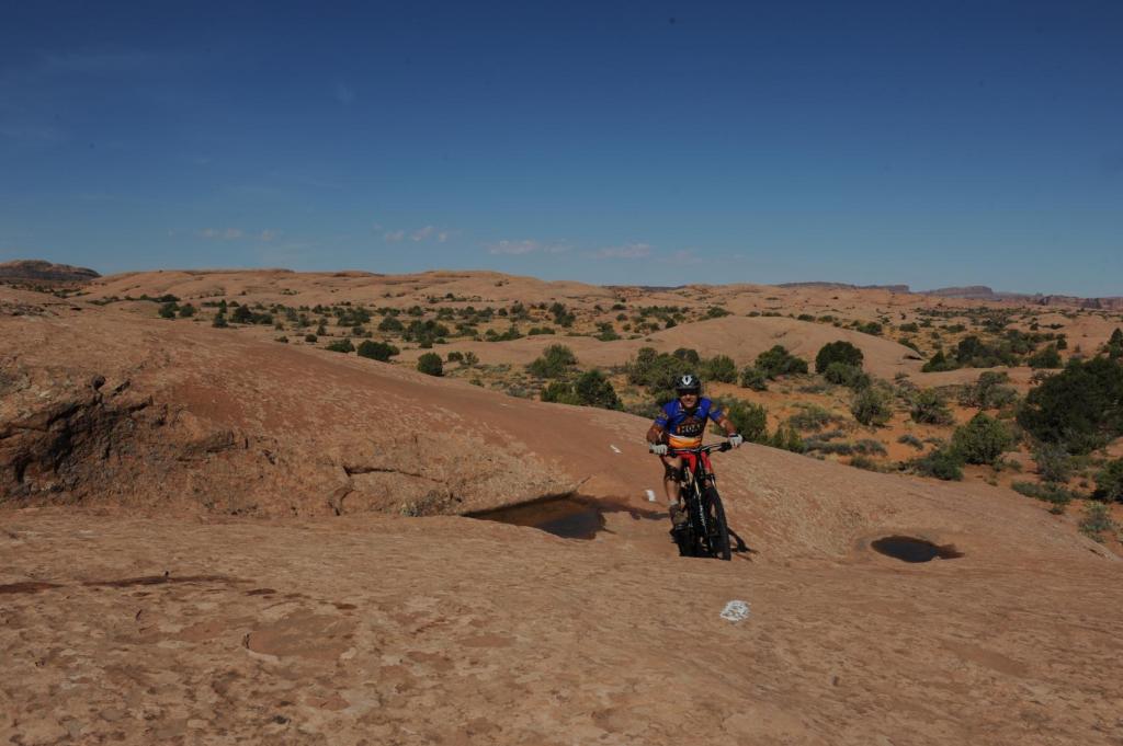 Il percorso è stupendo tutto su roccia dura a saliscendi con viste mozzafiato.L'ambiente però in estate è molto duro, siete in un deserto, quindi portare molta molta acqua (è anche possibile accorciare ed evitare l'asfalto da Moab al parcheggio, caricano la bici su una macchina )
